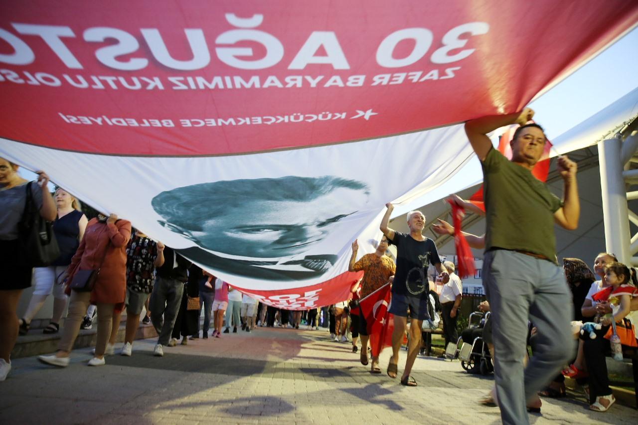 Zafer Bayramı kutlamaları sabahın erken saatlerinde Halkalı’daki Atatürk anıtına çelenk sunumuyla başladı. Akşam saatlerinde ise Cennet Meydanı’ndan başlayan Zafer Kortejine Küçükçekmece Belediye Başkanı Kemal Çebi, CHP Küçükçekmece İlçe Başkanı Turgay Özcan ve binlerce vatandaş al bayraklarıyla katıldı. Hep bir ağızdan söylenen marşlar ve şarkılarla, zafer coşkusuyla dolup taşan kentin sokakları, Küçükçekmece Belediyesi tarafından Türk Bayrağı ve Atatürk afişleriyle donatıldı.