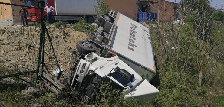 11 tonluk kamyon 200 metre sürüklenip boşluğa uçtu