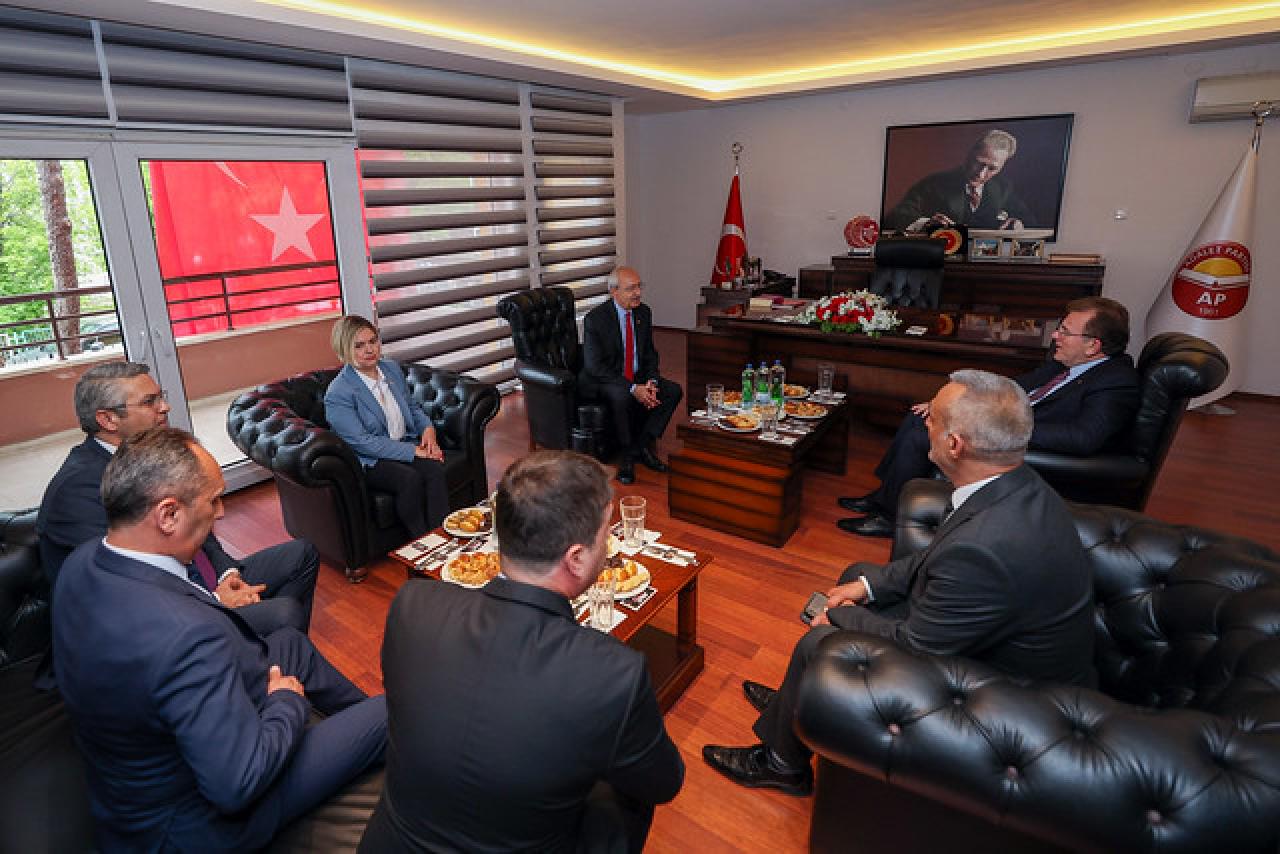 CHP Genel Başkanı ve Millet İttifakı Cumhurbaşkanı Adayı Kemal Kılıçdaroğlu, bugün; Adalet Partisi Genel Başkanı Vecdet Öz’ü ziyaret etti. Adalet Partisi Genel Merkezi’ndeki görüşmede, CHP Genel Başkanı ve Cumhurbaşkanı Adayı Kemal Kılıçdaroğlu’na; CHP Genel Sekreteri Selin Sayek Böke ve CHP Genel Başkan Yardımcısı Oğuz Kaan Salıcı eşlik etti. İki lider, görüşme sonrası yaptıkları ortak basın açıklamasında şunları söyledi: