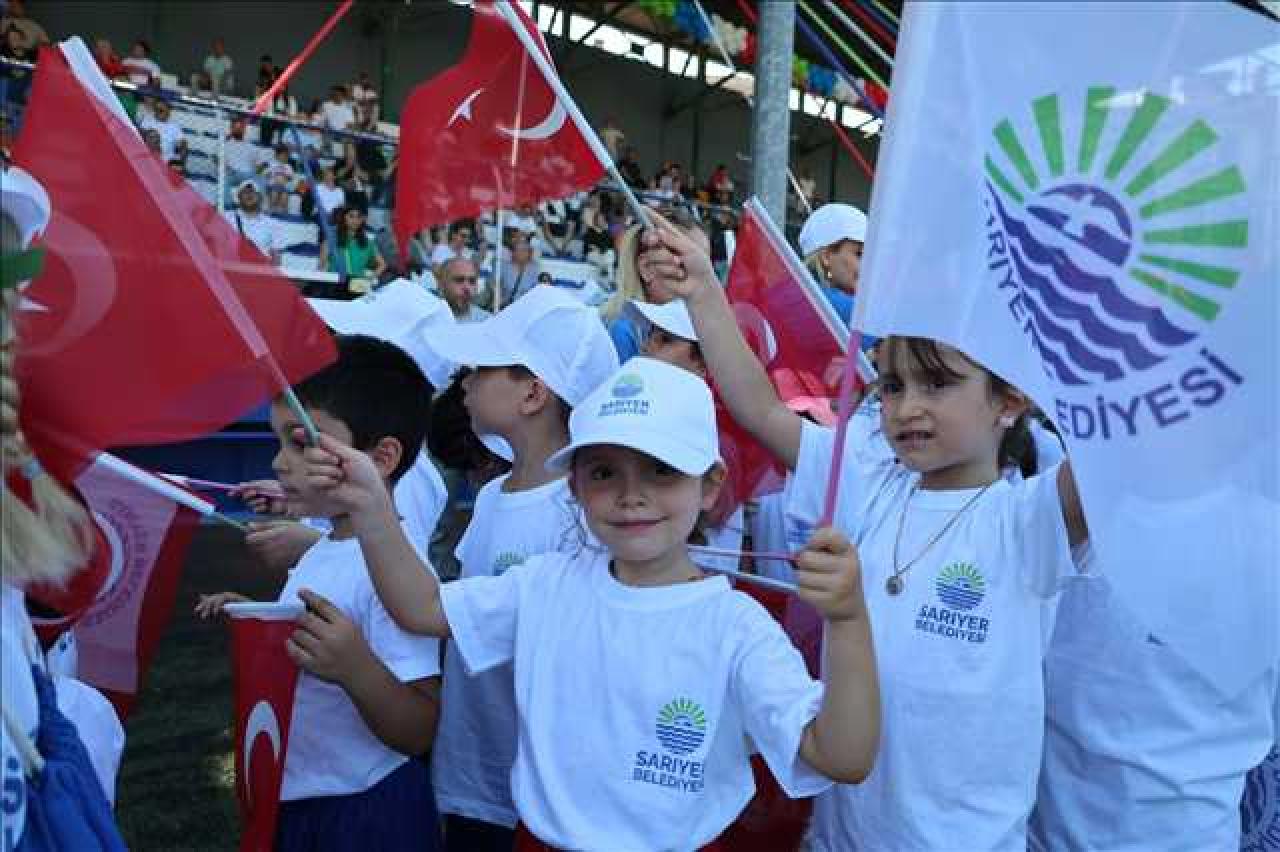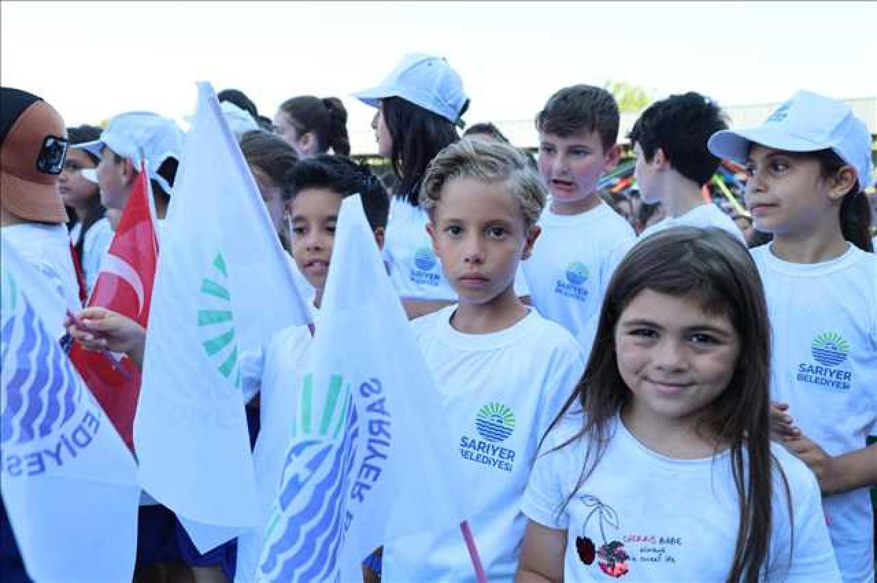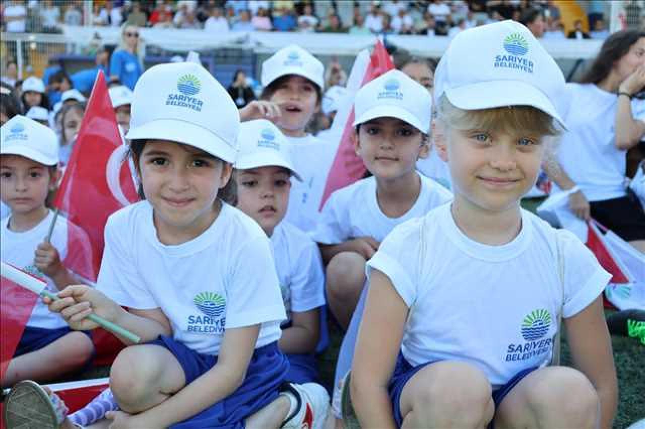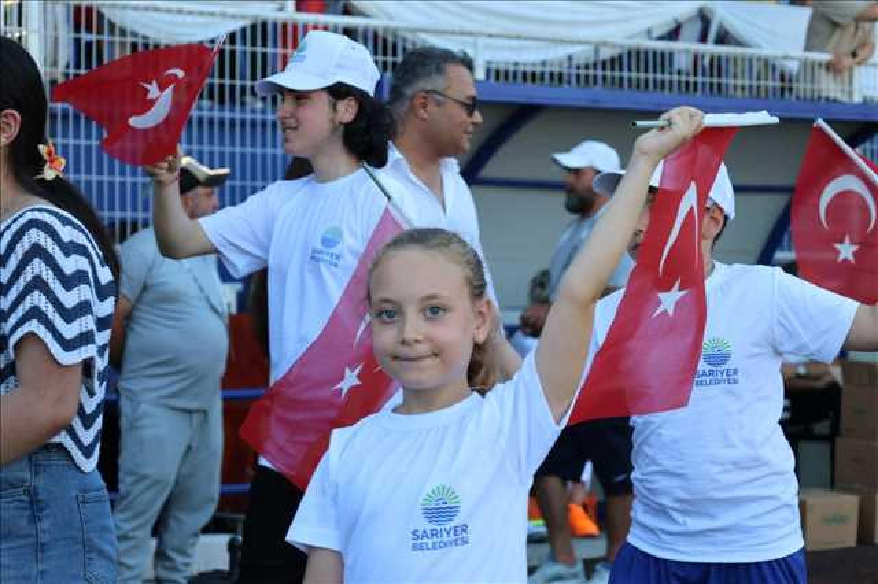 15. Yaz Spor Okulları açılış töreni İstiklal Marşı ve Saygı Duruşu ile başladı. Tüm branşlarda eğitime başlayacak binlerce öğrencinin, belediyenin kendilerine dağıttığı yaz spor okulu kıyafetleri ile marşlar eşliğinde, ellerinde Türk bayraklarıyla gerçekleştirdiği kortej yürüyüşü, uzun süre ayakta alkışlandı. Tören alanına öğrenciler ve ailelerini selamlayarak giren ve törenin açılış konuşmasını gerçekleştiren Sarıyer Belediye Başkanı Mustafa Oktay Aksu, sporun tüm insanlar için önemli olduğuna vurgu yaptığı konuşmasında, “Bununla beraber sporun çocuklar için önemi çok daha fazla anlamlar taşıyor. Spor, sadece fiziksel sağlık ve zindelik değil aynı zamanda; disiplin, takım ruhu, özgüven ve sorumluluk bilinci gibi değerleri de kazandırır. Sarıyer Belediyesi olarak, çocuklarımızın gelişimine ve onların yeteneklerini keşfetmelerine yardımcı olduğumuz için büyük mutluluk duyuyoruz. Yaz Spor Okullarında, 12 farklı branşta verilecek eğitimlerle çocuklarımızın farklı ilgi alanlarını keşfetmelerine de olanak tanıyacağız. Branşlardaki bu çeşitlilik, her bir çocuğumuzun kendi potansiyelini en üst düzeye çıkarabilmesi için önemlidir. Bugün burada bulunan çocuklarımız, yarının liderleri, bilim insanları, sanatçıları ve sporcuları olacaklar. Hedefimiz tüm çocuklarımızı sporla buluşturmaktır.” şeklinde konuştu.