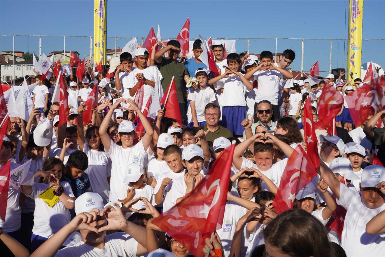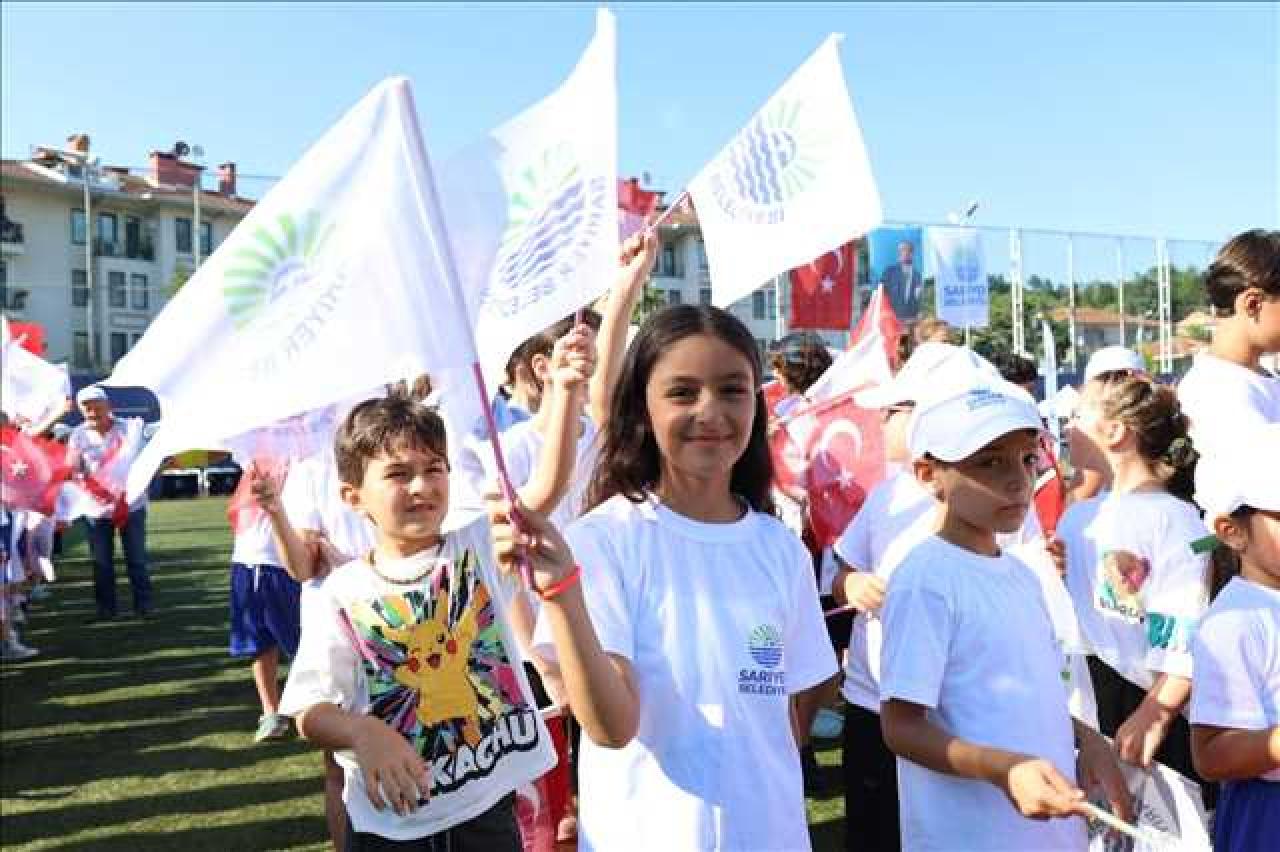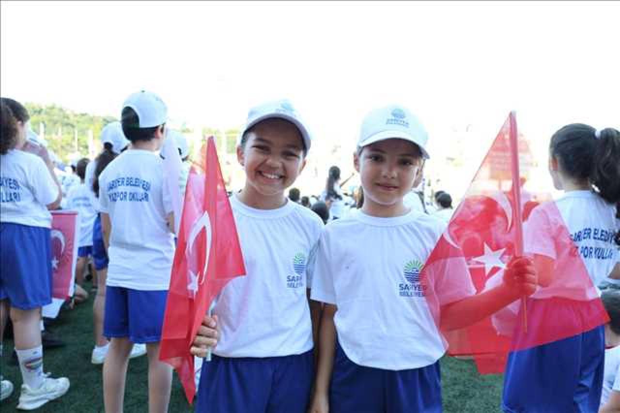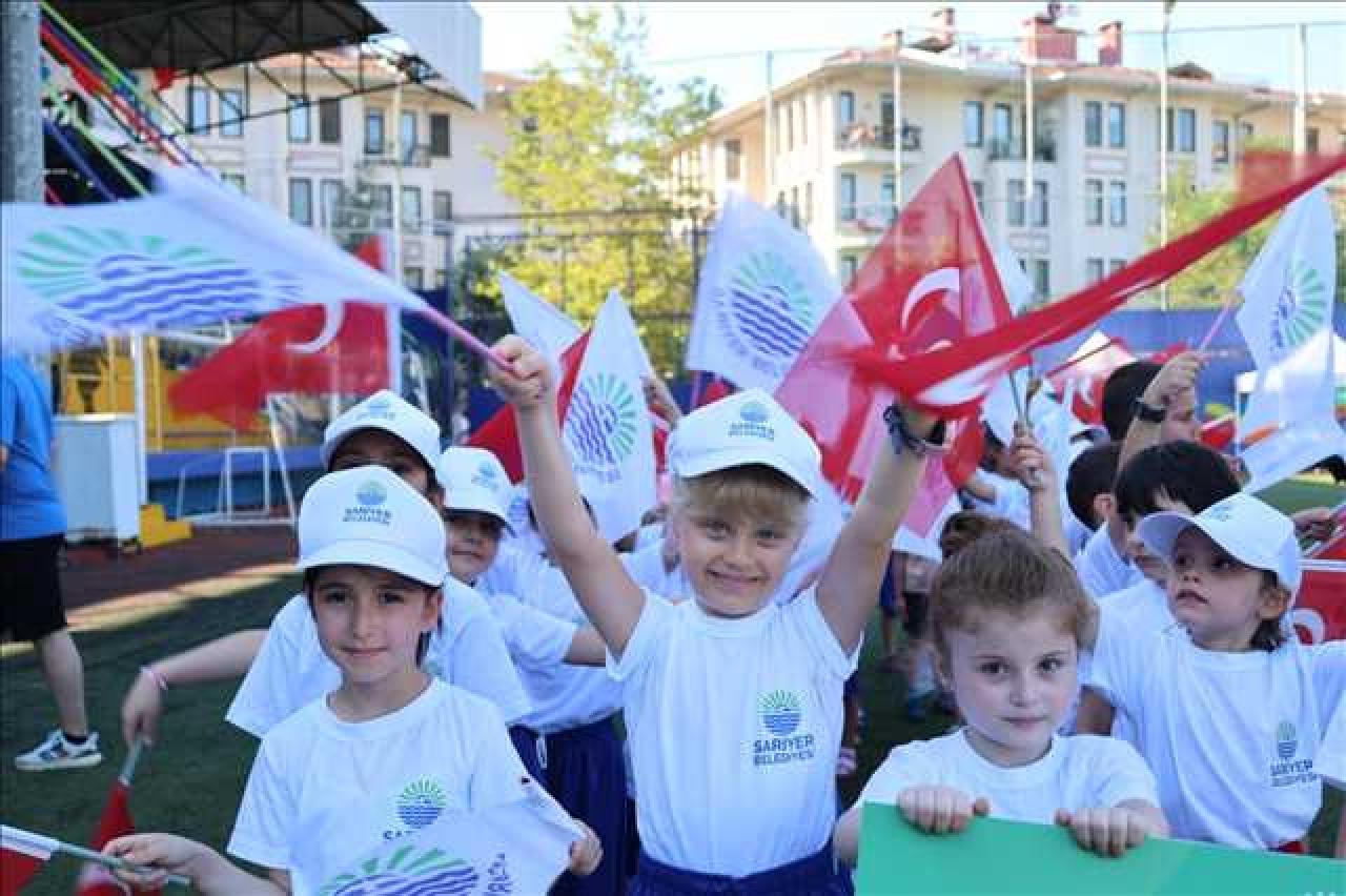 15. Yaz Spor Okulları açılış töreni İstiklal Marşı ve Saygı Duruşu ile başladı. Tüm branşlarda eğitime başlayacak binlerce öğrencinin, belediyenin kendilerine dağıttığı yaz spor okulu kıyafetleri ile marşlar eşliğinde, ellerinde Türk bayraklarıyla gerçekleştirdiği kortej yürüyüşü, uzun süre ayakta alkışlandı. Tören alanına öğrenciler ve ailelerini selamlayarak giren ve törenin açılış konuşmasını gerçekleştiren Sarıyer Belediye Başkanı Mustafa Oktay Aksu, sporun tüm insanlar için önemli olduğuna vurgu yaptığı konuşmasında, “Bununla beraber sporun çocuklar için önemi çok daha fazla anlamlar taşıyor. Spor, sadece fiziksel sağlık ve zindelik değil aynı zamanda; disiplin, takım ruhu, özgüven ve sorumluluk bilinci gibi değerleri de kazandırır. Sarıyer Belediyesi olarak, çocuklarımızın gelişimine ve onların yeteneklerini keşfetmelerine yardımcı olduğumuz için büyük mutluluk duyuyoruz. Yaz Spor Okullarında, 12 farklı branşta verilecek eğitimlerle çocuklarımızın farklı ilgi alanlarını keşfetmelerine de olanak tanıyacağız. Branşlardaki bu çeşitlilik, her bir çocuğumuzun kendi potansiyelini en üst düzeye çıkarabilmesi için önemlidir. Bugün burada bulunan çocuklarımız, yarının liderleri, bilim insanları, sanatçıları ve sporcuları olacaklar. Hedefimiz tüm çocuklarımızı sporla buluşturmaktır.” şeklinde konuştu.