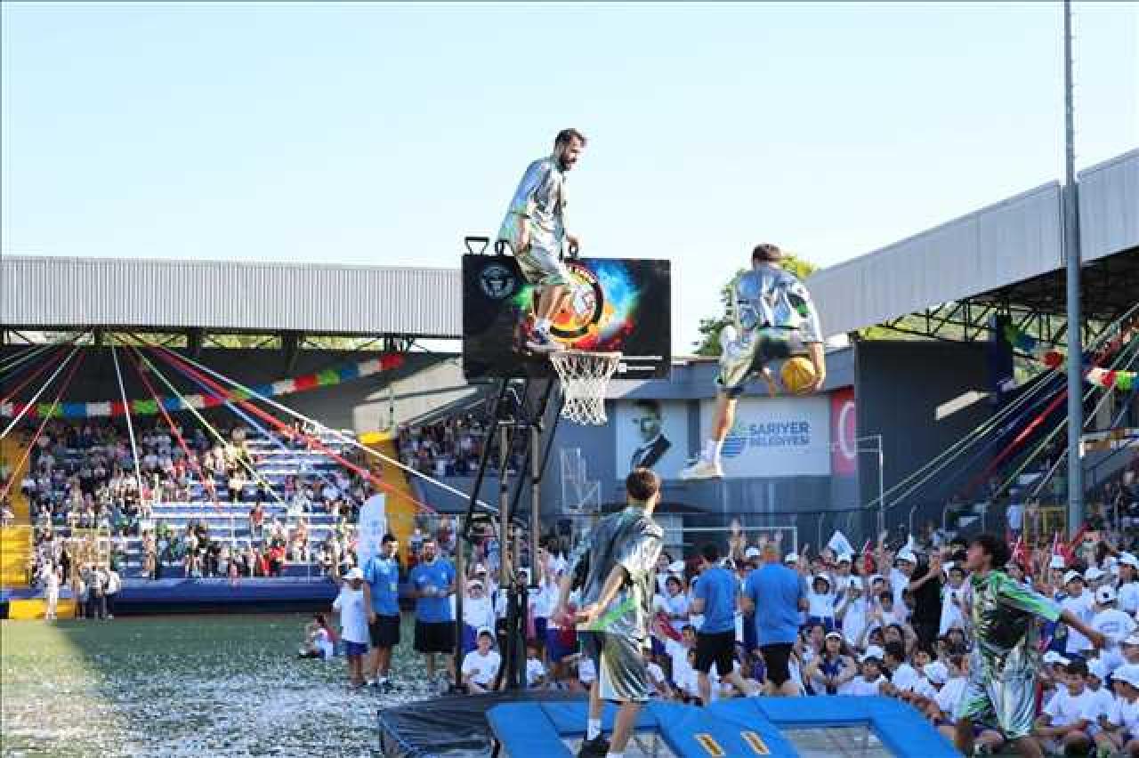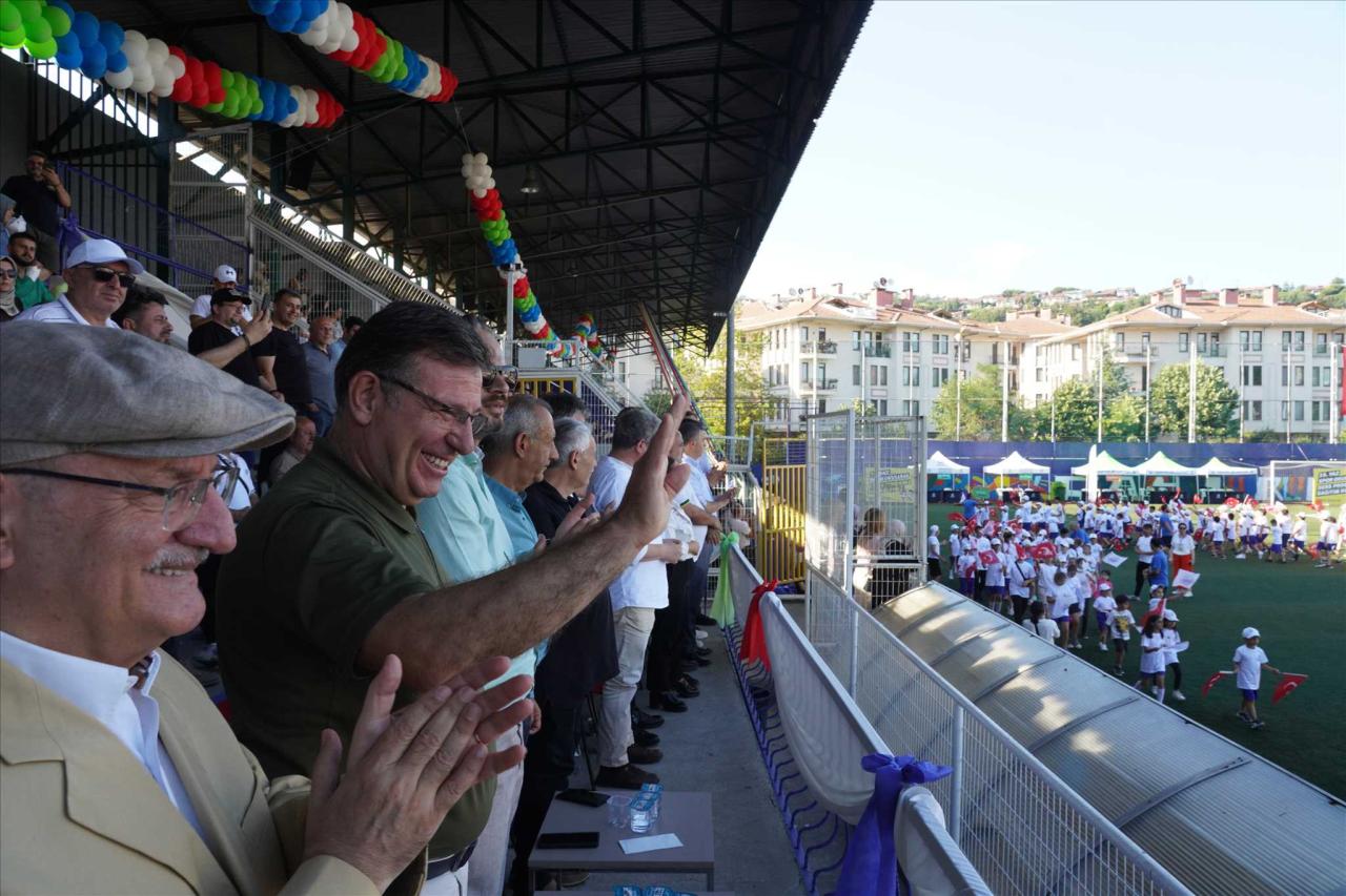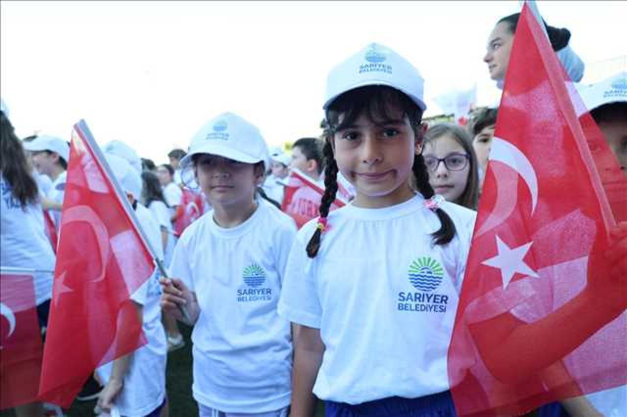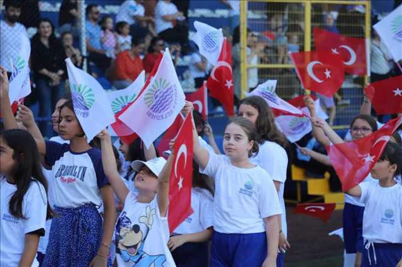 15. Yaz Spor Okulları açılış töreni İstiklal Marşı ve Saygı Duruşu ile başladı. Tüm branşlarda eğitime başlayacak binlerce öğrencinin, belediyenin kendilerine dağıttığı yaz spor okulu kıyafetleri ile marşlar eşliğinde, ellerinde Türk bayraklarıyla gerçekleştirdiği kortej yürüyüşü, uzun süre ayakta alkışlandı. Tören alanına öğrenciler ve ailelerini selamlayarak giren ve törenin açılış konuşmasını gerçekleştiren Sarıyer Belediye Başkanı Mustafa Oktay Aksu, sporun tüm insanlar için önemli olduğuna vurgu yaptığı konuşmasında, “Bununla beraber sporun çocuklar için önemi çok daha fazla anlamlar taşıyor. Spor, sadece fiziksel sağlık ve zindelik değil aynı zamanda; disiplin, takım ruhu, özgüven ve sorumluluk bilinci gibi değerleri de kazandırır. Sarıyer Belediyesi olarak, çocuklarımızın gelişimine ve onların yeteneklerini keşfetmelerine yardımcı olduğumuz için büyük mutluluk duyuyoruz. Yaz Spor Okullarında, 12 farklı branşta verilecek eğitimlerle çocuklarımızın farklı ilgi alanlarını keşfetmelerine de olanak tanıyacağız. Branşlardaki bu çeşitlilik, her bir çocuğumuzun kendi potansiyelini en üst düzeye çıkarabilmesi için önemlidir. Bugün burada bulunan çocuklarımız, yarının liderleri, bilim insanları, sanatçıları ve sporcuları olacaklar. Hedefimiz tüm çocuklarımızı sporla buluşturmaktır.” şeklinde konuştu.
