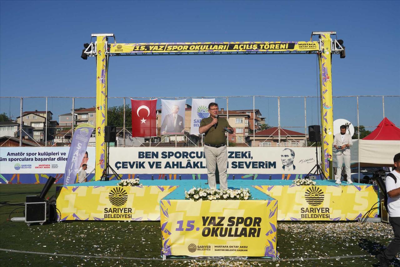 Çayırbaşı Stadı’nda görkemli bir törenle açılan olan Yaz Spor Okulları; Futbol, Kız Futbol, Voleybol, Basketbol, Yüzme, Atletizm, Judo, Karate, Badminton, Okçuluk, Kano ve Cimnastik olmak üzere 12 farklı branşta 5-14 yaş arasındaki 3 bin çocuğa ücretsiz eğitim verecek. Geçit töreni, akrobatik basketbol takımı Karizma Show ve dans gösterilerinin de yer aldığı Yaz Spor Okulları’nın açılışına, Sarıyer Belediye Başkanı Mustafa Oktay Aksu, Başkanvekili Hüseyin Coşkun, başkan yardımcıları, birim müdürleri, belediye meclis üyeleri, Çayırbaşı stadına ismi verilen önceki dönem Sarıyer Belediye Başkanlarından Sedat Özsoy, spor okulu öğrencileri ve aileleri ile çok sayıda Sarıyerli katıldı. CHP Yerel Yönetimlerden Sorumlu Genel Başkan Yardımcısı Gökan Zeybek ise yoğun programı nedeniyle katılamadığı törene, tüm çocuklara başarı dileklerini ilettiği telgraf gönderdi.