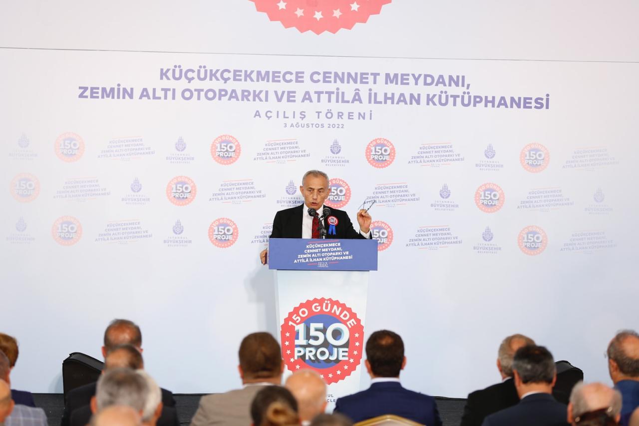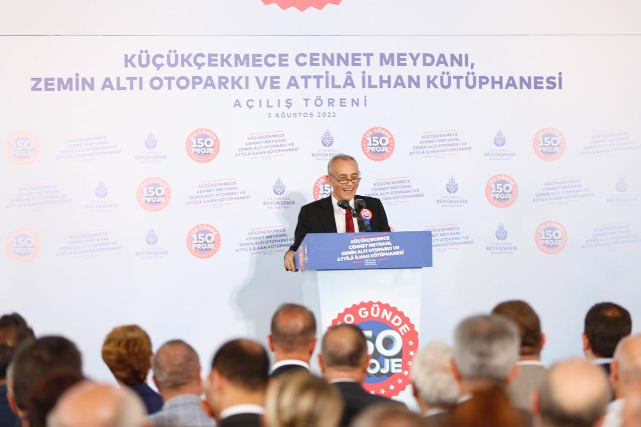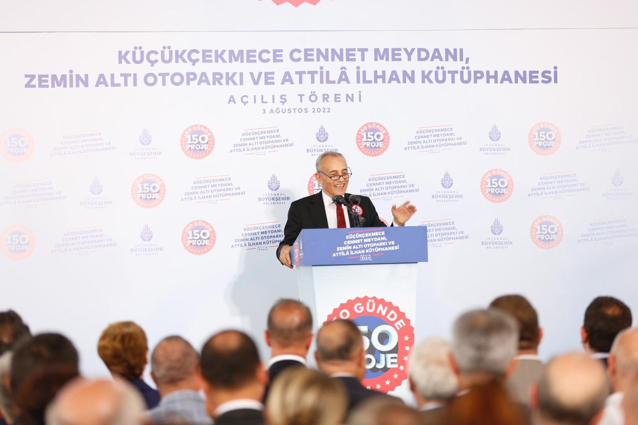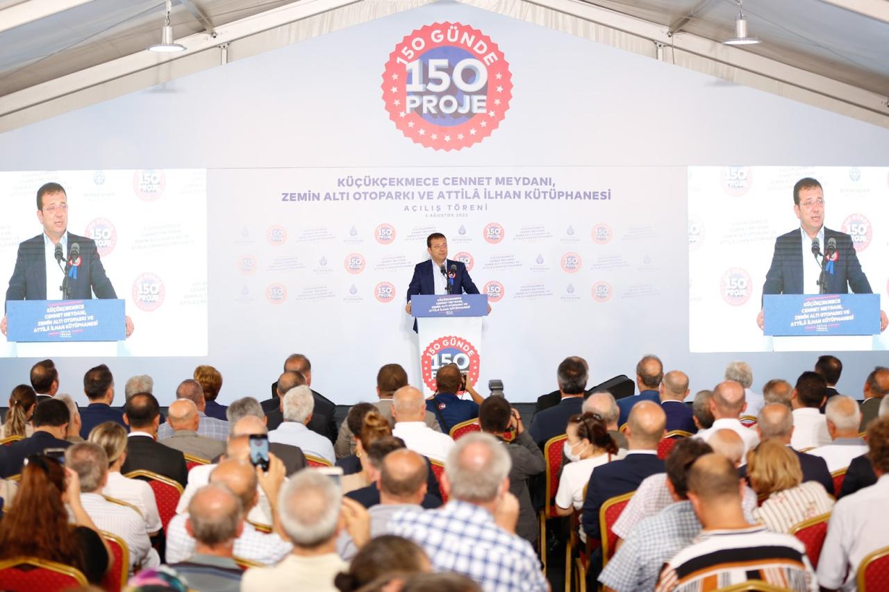 İstanbul Büyükşehir Belediyesi tarafından Küçükçekmece’de hayata geçirilen “Cennet Meydanı, Zemin Altı Otoparkı, Attilâ İlhan Kütüphanesi” projesinin açılışı, İBB Başkanı Ekrem İmamoğlu’nun katılımıyla gerçekleştirildi. İBB’nin, ‘150 Günde 150 Proje’ maratonu kapsamında Küçükçekmecelilerle buluşturduğu projenin açılışına İmamoğlu’nun yanı sıra Küçükçekmece Belediye Başkanı Kemal Çebi, İBB Genel Sekreter Yardımcısı Arif Gürkan Alpay, milletvekilleri, meclis üyeleri, siyasi parti temsilcileri ve çok sayıda vatandaş katıldı.