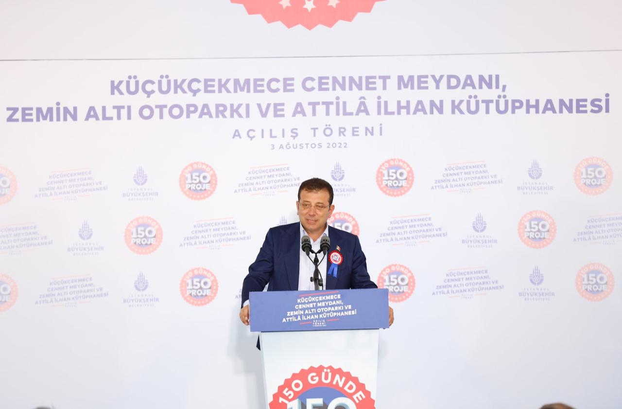 Açılışta konuşan İBB Başkanı Ekrem İmamoğlu İstanbul’un her ilçesine bütüncül bakarak hizmet sunduklarını ifade ederek, “Bölgesel ihtiyaçları nasıl en iyi biçimde karşılayacağına karar verdiğimiz, bu esnada özellikle bir kısım ihale, tasfiye sorunları yaşadığımız ve en sonunda en doğru biçimde halkımıza kazandırmaya dönük projeleri hayata geçiriyoruz. Ortak aklı hakim kılmasak, yapılan işler yapboza dönüşebiliyor. Tek bir amacımız var bu şehirde yaşayan herkesin hayatını kolaylaştırmak ve güzelleştirmek. İnsanların mutluluk içinde, umutla geleceğe baktığı şehri var etmek. İstanbul'u adil, yeşil, mutlu, yaratıcı, üretken bir şehir haline getirmek için çalışıyoruz. Küçükçekmece’de de bu özelliklere sahip projelerimizi hayata geçiriyoruz. Cennet Meydanı düzenlenmesiyle kolay erişilebilir, güvenli, nefes alma imkânı sunan bir yaşam alanını sizlerle buluşturuyoruz. Daha önce insanların yanından geçmediği kamyon otoparkının bu hale dönüşmesi çok önemli. Tabiatın yeşilini hakim kılarak, yeşil alanlarla burayı daha güçlü hale getirmiş olduk. Kaykay pisti, süs havuzundan oyun alanına, kafeterya alanı, yer altı otoparkı ve Attilâ İlhan'ın ismini taşıyan kütüphanesiyle çocuklarımızın kültür- sanat ve bilgiyle buluştuğu önemli bir sahaya dönüşmüş oldu. Engelli vatandaşlarımızın bu hizmetlerden en doğru şekilde faydalanabildiği bir tasarımla kimlikli bir sahayı Küçükçekmece halkımızın hizmetine sunuyoruz. Yakın çevreye ulaşım noktasında 421 araçlık otoparkın da iyi bir durak olacağını görüyorum” diye konuştu.
