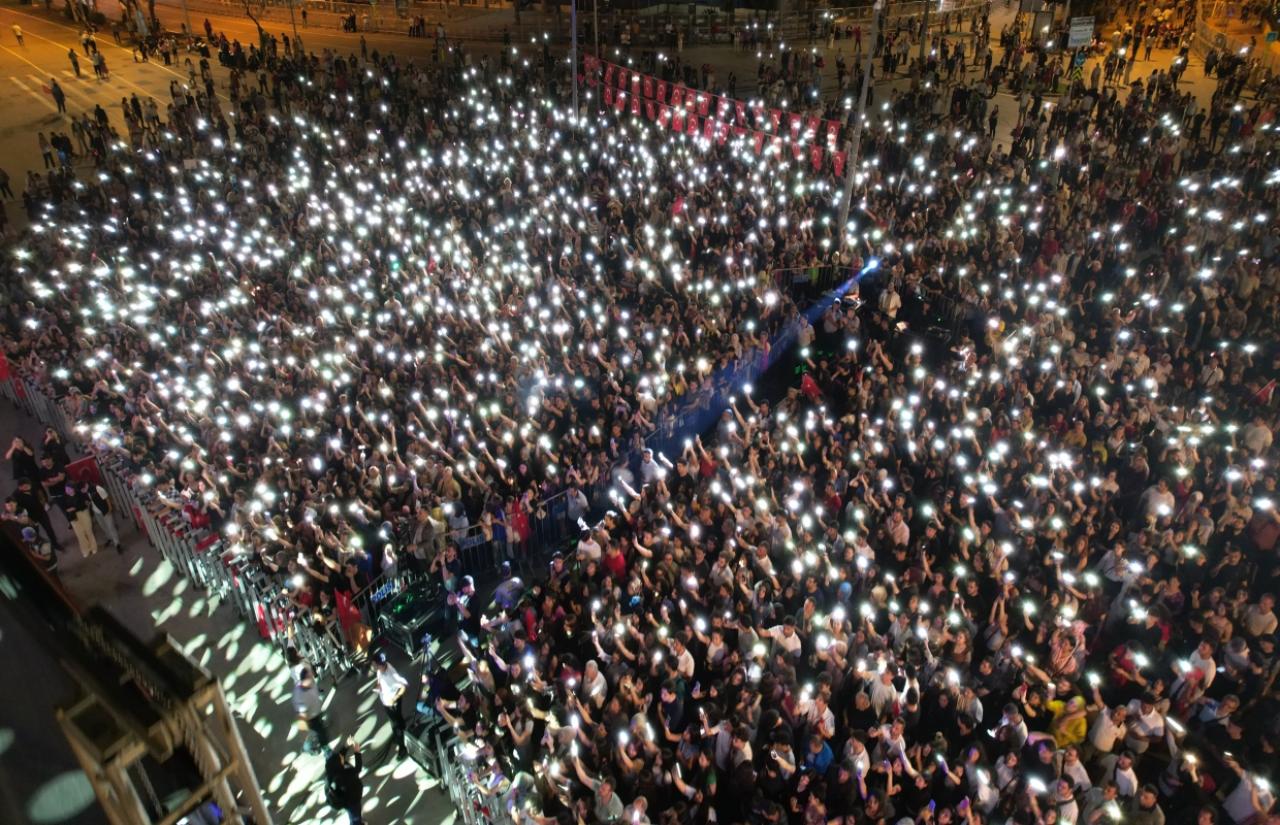 Atatürk Bulvarı,Cumhuriyet Caddesi, Ziyapaşa Bulvarı güzergahını izleyerek Uğur MumcuMeydanı’na akan Adanalılar, burada Göksel Konseri’ni izlemek için gelen coşkuluhemşehriyeriyle buluştu.