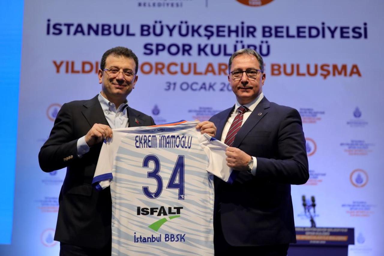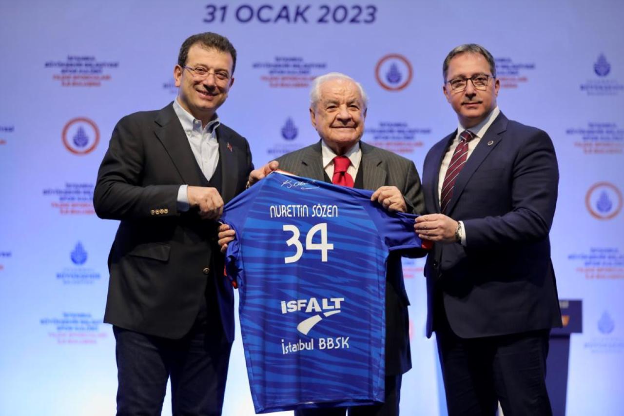 Konuşmalardan sonra Keleş, İmamoğlu ve Sözen’e, arkalarında isimlerinin yazılı olduğu 34 sırt numaralı İBB SK formalarını hediye etti. Ardından İBB SK’nin şampiyon sporcuları sahneye davet edildi ve anı fotoğrafları çekildi.