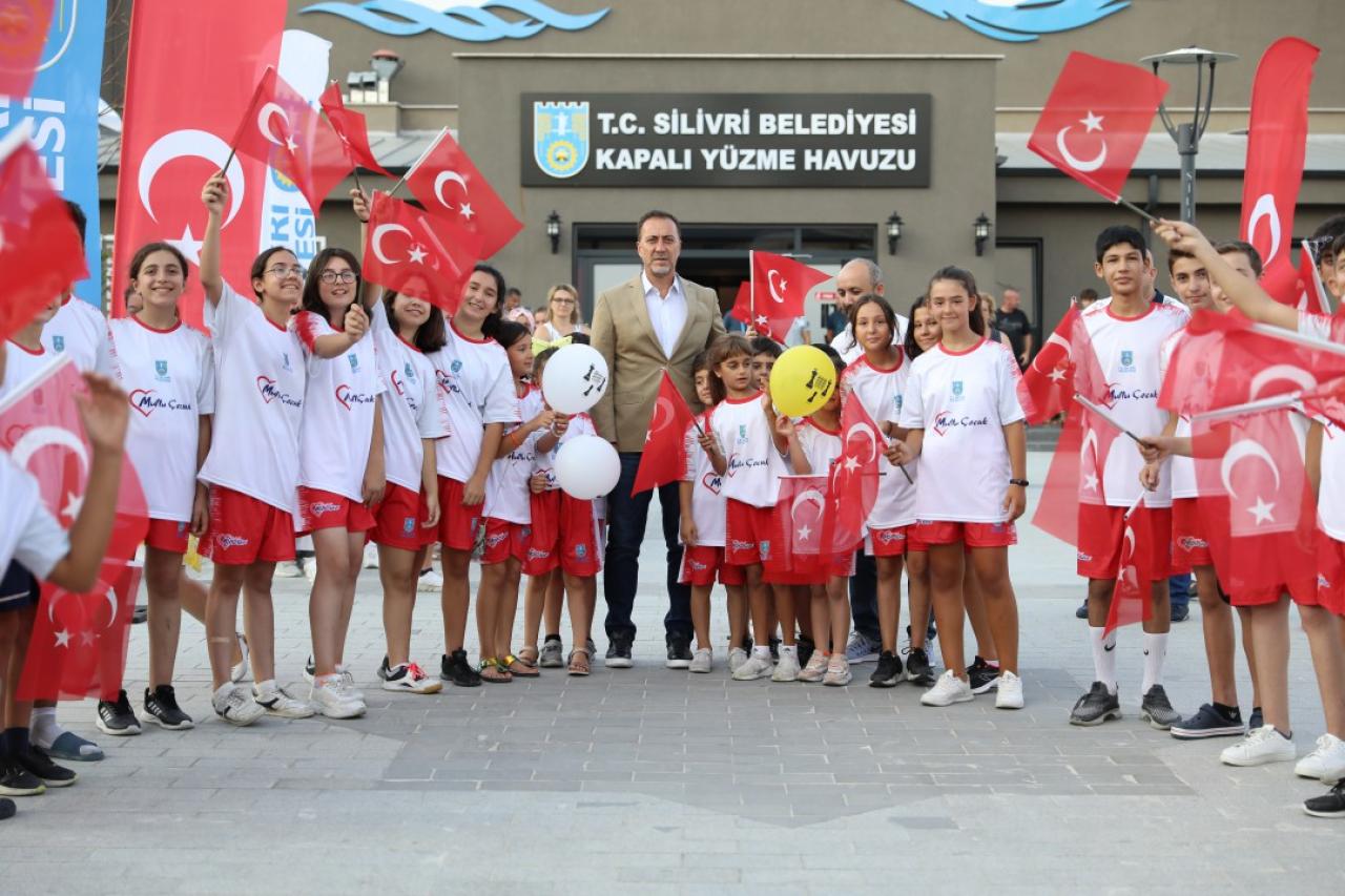 Törendeki konuşmasına “Cumhuriyetimizin Banisi Gazi Mustafa Kemal Atatürk’ün ‘Ben sporcunun zeki, çevik ve aynı zamanda ahlaklısını severim’ dediği, ‘Milletin bağrından temiz bir kuşak yetişiyor. Bu eseri ona bırakacağım ve gözüm arkada kalmayacak’ dediği gençlerimiz, çocuklarımız… Bugün bizlere emanet edilen tüm makamların gelecekteki taşıyıcıları…” sözleriyle başlayarak öğrencilere seslenen Silivri Belediye Başkanı Volkan Yılmaz, “İlçemizde yaşayan öğrencilerimiz için hayata geçirdiğimiz 2022 Yaz Spor Okullarımızın kapanış töreninde bir aradayız. Gençlik ve Spor Bakanlığı iş birliğiyle düzenlediğimiz Yaz Okullarımızda 6-15 yaş aralığındaki yaklaşık 2.500 çocuğumuza yüzmeden futbola, satrançtan okçuluğa kadar toplam 10 branşta eğitim verdik. Bugün başlangıç aşaması olarak aldıkları eğitimler çocuklarımızı yarının şampiyon adayları yapacak. Çocuklarımız elde edecekleri başarılarla Silivri’mizin adını Türkiye ve dünyaya tanıtacak, aldıkları dereceler ve altın madalyalarla şanlı bayrağımızı göndere taşıyacaklar. Bu nedenle çocuklarımıza yaz dönemi boyunca eğitim veren hocalarımıza, eğitmenlerimize ve burada görev yapan mesai arkadaşlarıma teşekkür etmek istiyorum. Yine büyük bir gayretle kursları tamamlayan öğrencilerimize ve çocuklarını bizlere emanet eden değerli ailelerimize de ayrıca teşekkür ediyorum. Unutmayın ki çocuklarınız bizim de çocuklarımız. Ben sizin bir kardeşiniz, bir evladınız olarak tıpkı sizin gibi çocuklarınızın üzerine titremeye, onların gelişimi için hassasiyetle çalışmaya devam edeceğim.” dedi.