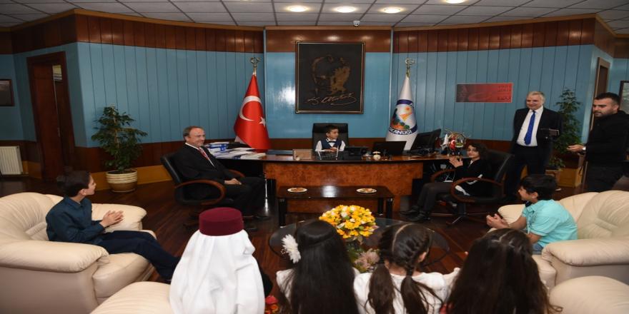 Başkan Hançerli ‘’ Bugün bütün çocuklar için çok önemli bir gün. Egemenliğin kayıtsız şartsız mille-te veriliği, ilk meclisin açıldığı gün. Cumhuriyetimizin ilelebet yaşaması için var gücümüzle çalışacağız. Gazi Mustafa Kemal Atatürk’ün çocukları olarak gururluyuz. 23 Nisan tüm dünya çocuklarının bayramıdır. Evrensel bir bayramdır. Başkanıma da çalışmalarında başarılar diliyorum. ‘’ ifadelerini kullandı.