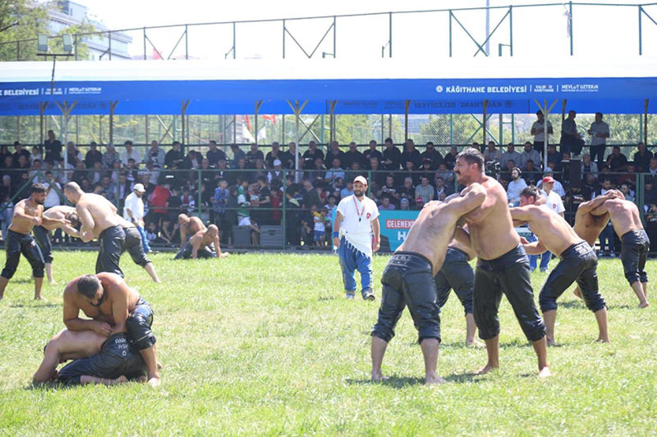 Sadabad Yaz Etkinlikleri kapsamında düzenlenen yağlı güreş müsabakalarına Kağıthane Belediye Başkanı Mevlüt Öztekin ev sahipliği yaparken siyasiler, basın, STK temsilcileri ve sporseverlerden oluşan binlerce kişi müsabakaları izledi.