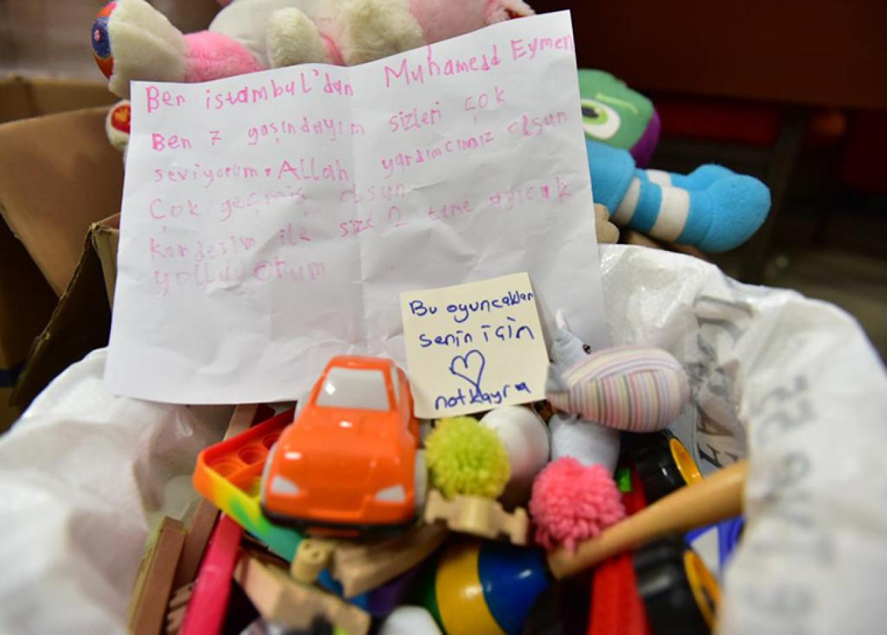 Tuzla’da yaşayan 7 yaşındaki Muhammet Eymen’in depremzede yaşıtlarına gönderdiği mektup ve hediyeler, 24 saat esasına göre gönüllü olarak çalışan Tuzlalılara duygu dolu anlar yaşattı. Muhammet Eymen kendi evinde kullandığı 2 tane oyuncak ayıyı, “Ben İstanbul’dan Muhammet Eymen. 7 yaşındayım. Sizleri çok seviyorum. Allah yardımcınız olsun. Çok geçmiş olsun. Kardeşim ile size 2 tane oyuncak yolluyorum” notuyla Gönül Elleri Çarşısı’na getirdi. Tuzlalı gönüllüler Muhammet Eymen’in hediyesini tıra yükleyerek deprem bölgesine gönderdi.