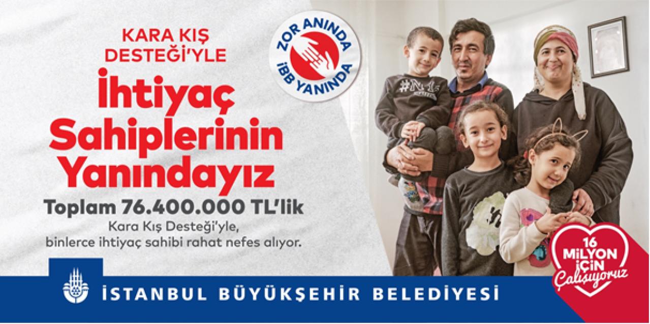 İstanbul Büyükşehir Belediyesi kış aylarında soğuyan hava koşulları sebebi ile geçim zorluğu çeken vatandaşlar için yeni destek paketi müjdesini verdi. Sosyal Hizmetler Daire Başkanlığı bünyesinde halihazırda Sosyal Destek İstanbul Kart yararlanıcısı olan haneler içerisinden en düşük gelir durumuna sahip haneler için uyguluyor. Alınan sosyal destek tutarına ek tek seferlik 1000 TL Kara Kış Desteği veriyor. Proje kapsamında tüm hazırlıklar gerçekleşti. Toplamda 76.400’ün üzerinde haneye 76.400.000 TL nakit destek 2 Şubat tarihinde Sosyal Destek İstanbul Kart’larına aktarıldı.
