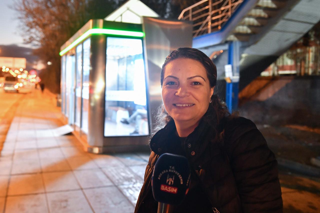 -Muhammet Emin Yıldırım: “Ankara Büyükşehir Belediyesinin yapmış olduğu durakları çok beğendim. İnsanların havanın soğuk olduğu bu dönemlerde üşümeyecek olması da çok anlamlı olmuş. İnsanlar otobüs beklerken telefonunu şarj edecek bir yer aramak durumunda kalmıyor.”