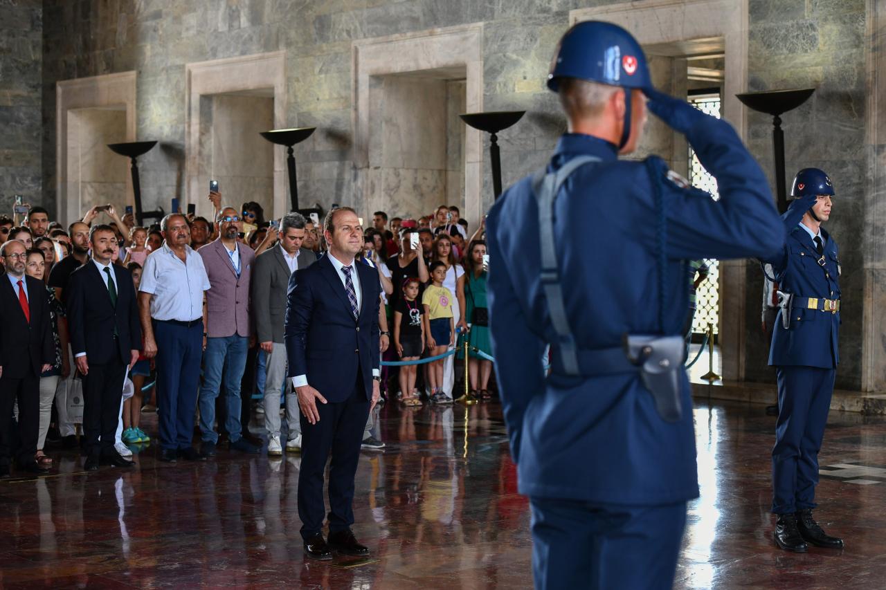 Anıtkabir Özel Defteri’ni imzalayan Deprem Risk Yönetimi ve Kentsel İyileştirme Daire Başkanı Mutlu Gürler, “Ankara Büyükşehir Belediyesi Deprem Risk ve Kentsel İyileştirme Daire Başkanlığı olarak huzurunuzda bulunmanın gururu içerisindeyiz. 17 Ağustos 1999 Marmara Depremi’nde kaybettiğimiz vatandaşlarımızın acısı hala içimizde kanayan bir yara olarak varlığını hissettirmektedir. Bugün burada yaşanan yıkıcı deprem neticesinde kaybettiklerimiz başta olmak üzere ülkemizde yaşanan tüm afetler nedeniyle hayatını kaybeden vatandaşlarımızı anmak adına huzurunuza gelmiş bulunuyoruz. Bizlere emanet ettiğiniz bu kıymetli vatanın her ferdini afetlere karşı korumayı görev bilmekteyiz. Bu vesileyle, Aziz ruhunuzun attığımız her adımda yanımızda olduğunu hissediyor, bizlere bıraktığınız tüm manevi değerlere sıkı sıkıya bağlı bir görev anlayışı ile hareket ediyoruz. Bu anlamlı günde size sonsuz saygı ve minnetlerimizi sunuyoruz”ifadelerini kullandı.<