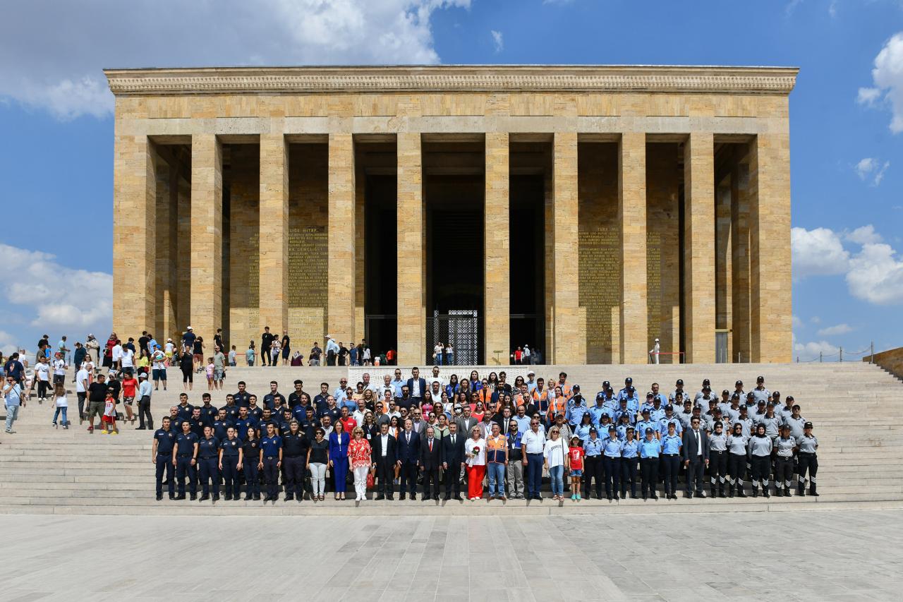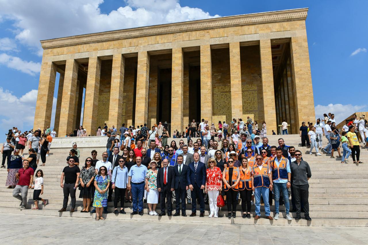 Deprem Risk Yönetimi ve Kentsel İyileştirme Daire Başkanlığı öncülüğünde “Afet Farkındalık ve Temel İlk Yardım” eğitimini tamamlayan STK’ler, muhtarlar, yerel dernekler ile ABB birimlerinden gönüllülerinin katılımıyla depremde hayatını kaybeden vatandaşların anısına Anıtkabir ziyareti gerçekleştirildi.