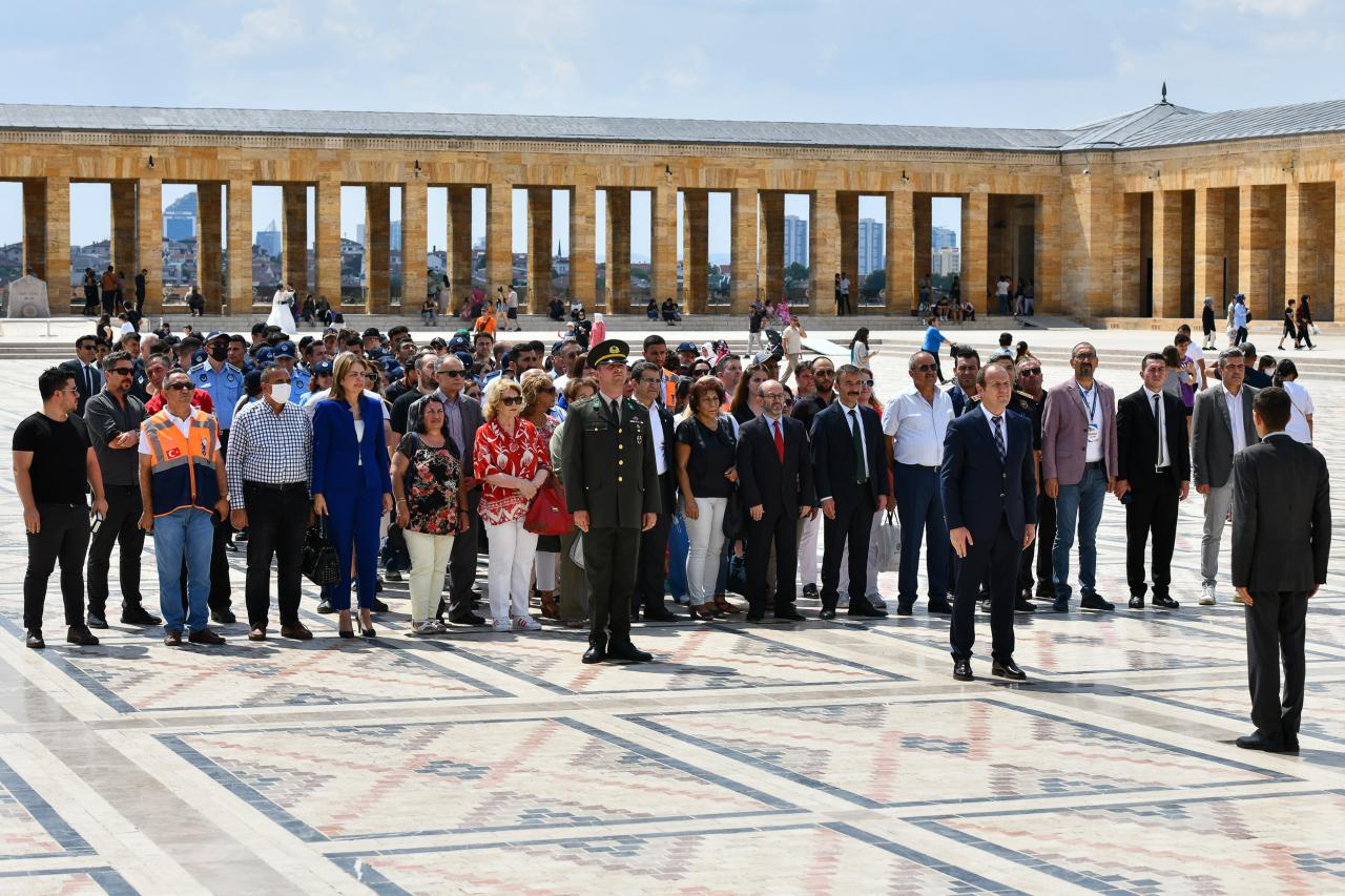 Gazi Mustafa Kemal Atatürk’ün mozolesine çelenk konulmasıyla başlayan anma töreninde saygı duruşunda bulunulurken, duygu dolu anlar da yaşandı.