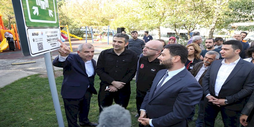 AFAD ve Kağıthane Belediyesi işbirliğiyle deprem tedbirleri kapsamında acil durumlarda toplanma alanlarında bulunan karekod ve numara sistemi Kağıthane Belediye Başkanı Mevlüt Öztekin tarafından basın mensuplarına tanıtıldı.