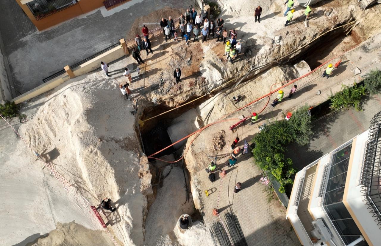 BahçeşehirMahallesi’nde inşa edilen yeni yağmur suyu hattında 1600 mm çapında borularkullanılıyor. Hattın tamamlanmasının ardından yağmur sularının hızlı ve etkilibiçimde toplanması için mahallede uygun noktalara yağmur suyu ızgaralarıyerleştirilecek.