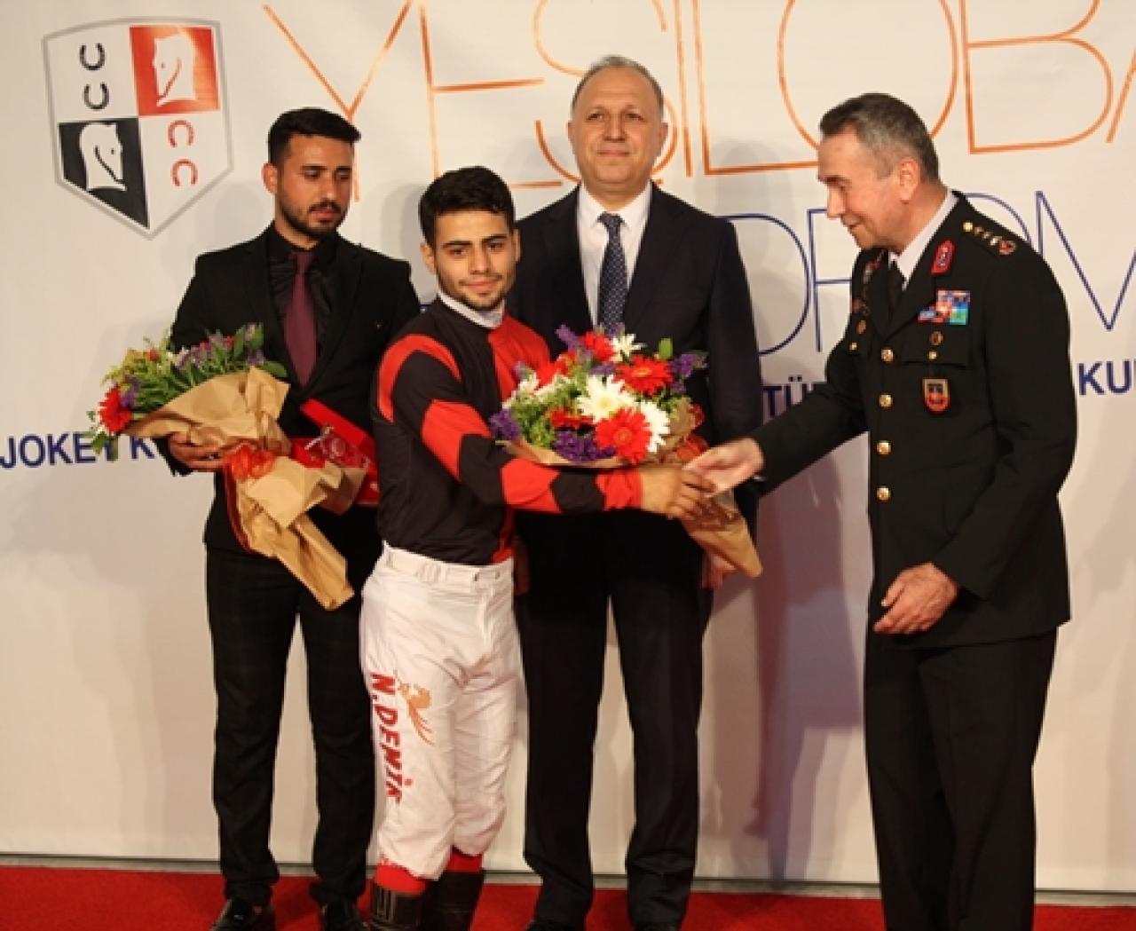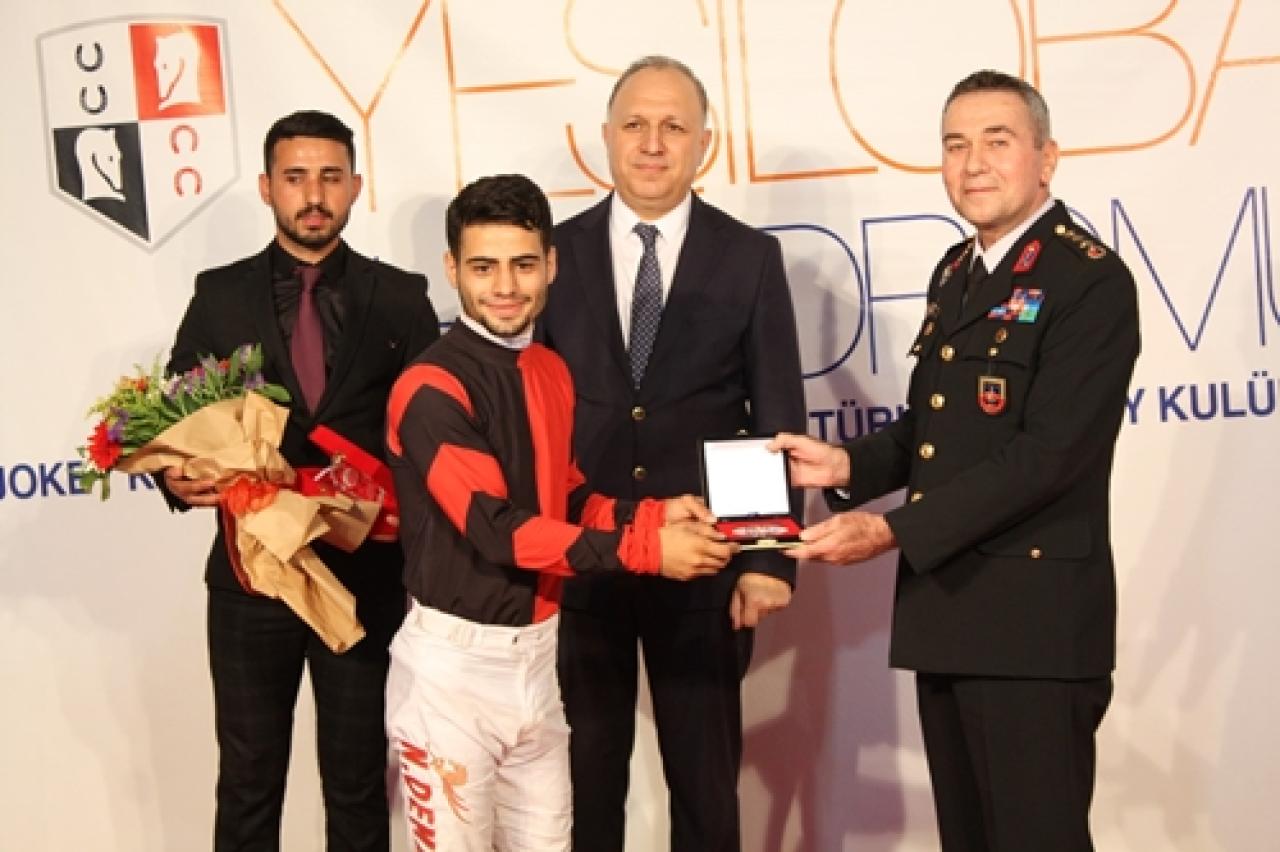 Yarışın ardından düzenlenen törende kazanan safkanın sahibi adına Servet Doğan'a plaketini ve çiçeğini, İl Jandarma Komutan Vekili Jandarma Albay Abdulkadir Seri takdim etti.