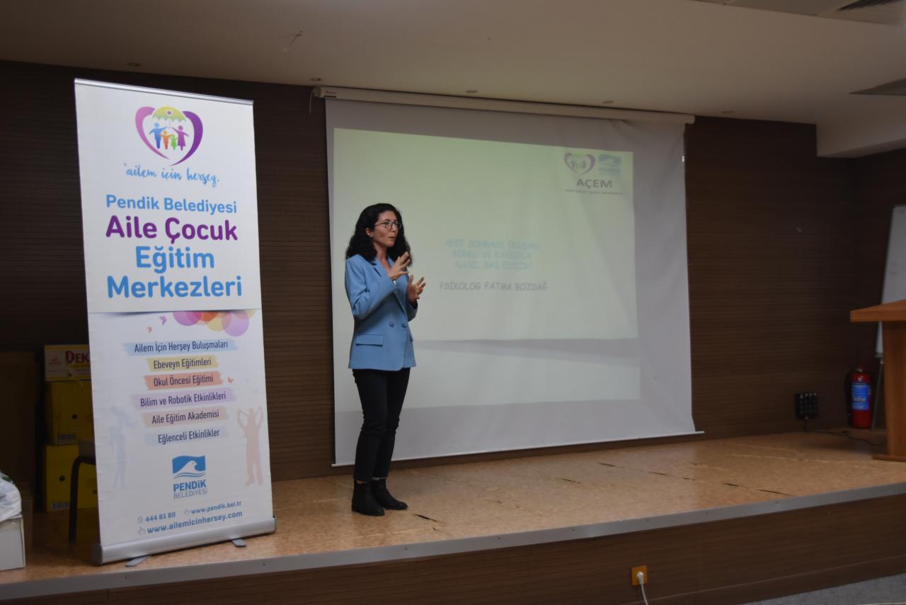 Pendik Belediyesi ,Kahramanmaraş merkezli deprem felaketinin ardından vatandaşlar için “Afet Sonrası Korku ve Kaygıyla Nasıl Baş Edilir” seminerleri düzenliyor.Seminerlerde ikincil travma,kaygı,korkuyla baş etme ve benzeri noktalara değiniliyor.Psikolog ve Aile Danışmanı Fatma Bozdağ’ın verdiği seminerlerde afet sonrası duygu durumları üzerine de katılımcılarla soru-cevap yapılıyor.Seminerlerin ilki Ahmet Yesevi mahallesi Ahi Evran Kültür Merkezinde düzenlendi.İki gün daha devam edecek seminerler saat 11.00’da Perşembe günü Ahmedi Hani Kültür Merkezinde,Cuma günü ise Şehit Yalçın Aran Spor Kompleksinde gerçekleştirilecek.