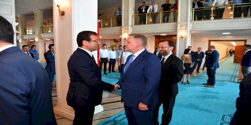 İstanbul'un AK Partili ilçe belediye başkanları, 23 Haziran seçimlerinin ardından ikinci kez mazbatasına kavuşan İstanbul Büyükşehir Belediye (İBB) Başkanı Ekrem İmamoğlu'na makam odasında tebrik ziyaretinde bulundu. Meclis toplantısı öncesinde gerçekleştirilen ziyarette, İBB Başkanvekili Göksel Gümüşdağ da hazır bulundu. İmamoğlu ile AK Partili ilçe belediye başkanları anı fotoğrafı çektirdi. Ziyaret, basına kapalı gerçekleştirildi.