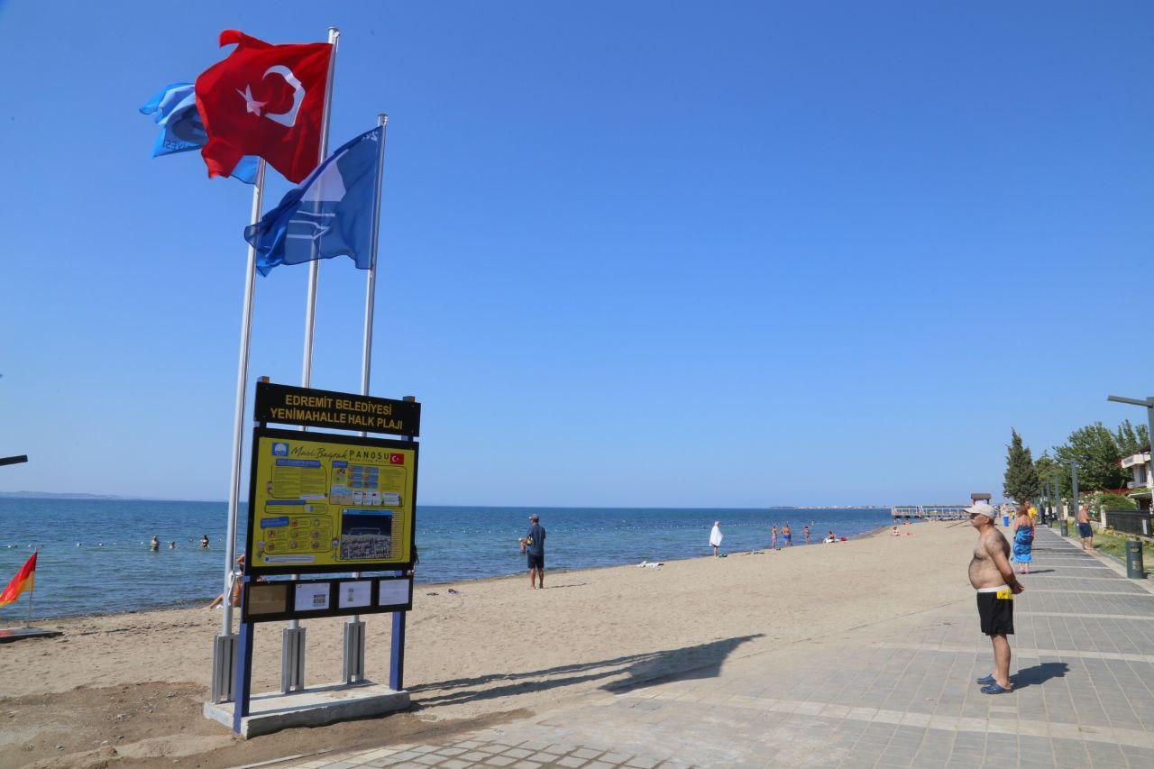 Edremit Belediye Başkan Yardımcısı Ahmet Elman, “Edremit Belediyesi olarak kendi sorumluluk alanımızda temiz, bakımlı, donanımlı güvenli plajları halkımıza sunmak için çalışıyoruz. Bunun karşılığında turizm içinde büyük önem taşıyan, temiz deniz ve çevrenin sembolü olan Mavi Bayrağı Yeni Mahalle Halk Plajımıza kazandırdık. Bu çalışmaları sürdürülebilir kılıp ilçemizde ki Mavi Bayraklı plajları çoğaltmak istiyoruz” dedi.