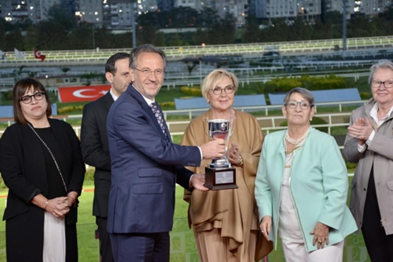 Koşunun ardından düzenlenen törende, kazanan safkanın sahibi, Kulübümüz Asli Üyesi Hayrullah Doğan'a kupasını, merhum Akgün Midillili'nin eşi Gülsen Midillili takdim etti.