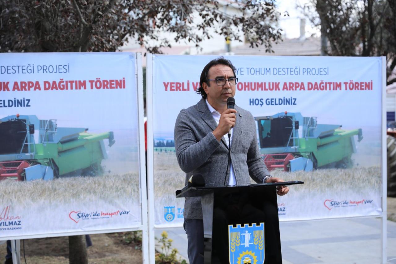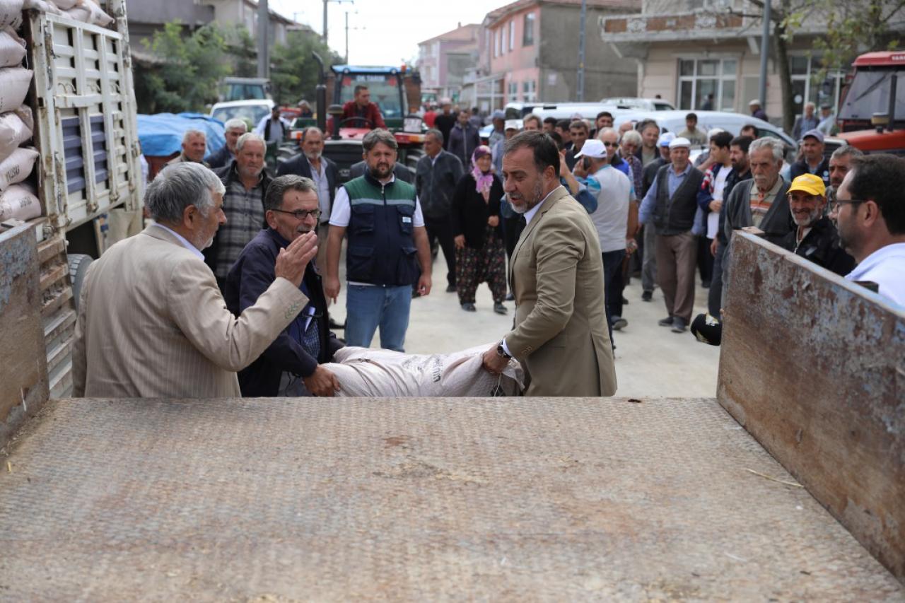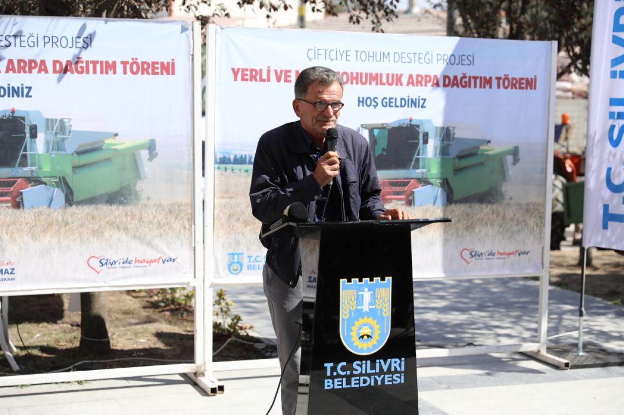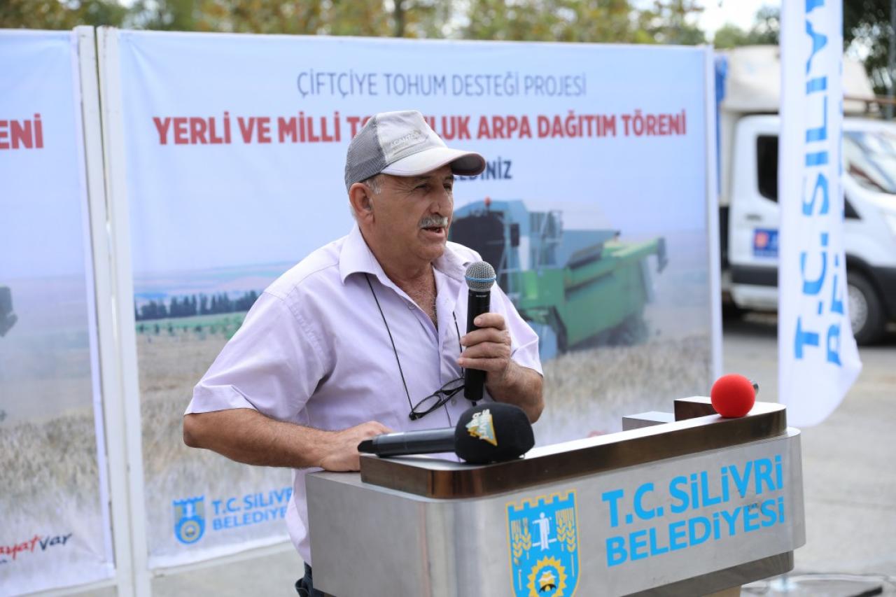 Kadıköy Mahallesi’nde düzenlenen dağıtım töreninde konuşan Kadıköy Mahallesi Muhtarı Mehmet Yeniçiftlik, “Belediye Başkanımız Volkan Yılmaz’ın geleneksel hale getirdiği tohumluk arpa dağıtım töreninde bir aradayız. Bununla birlikte mısır silajı, ayçiçek yağı, saman balyası ve yem bezelyesi gibi ürünleri çiftçilerimizle ve ihtiyaç sahipleri ile paylaşıyor. Kendisine teşekkür ediyorum. Allah onu başımızdan eksik etmesin.” diye konuştu.
