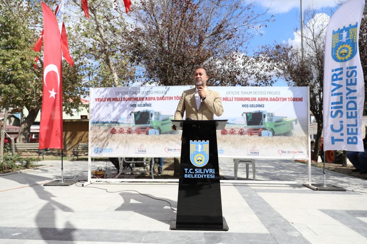 Çiftçiye Tohum Desteği projesi ile tüm Türkiye’de adından söz ettiren Silivri Belediyesi, kendi arazilerinde yetiştirdiği yerli, milli ve sertifikalı tohumluk arpaların dağıtımına devam ediyor. Silivri Belediyesi tarafından Kadıköy ve Akören mahallelerinde düzenlenen Yerli ve Milli Tohumluk Arpa Dağıtım Töreni ile 225 üreticiye 750 bin TL değerindeki 45 ton tohumluk arpa dağıtıldı. Çiftçiler bu ürünlerle 900 dönüm araziye ekim yapabilecek. Ürünlerini davul zurna eşliğinde teslim alan çiftçiler destekten duydukları memnuniyeti dile getirerek Silivri Belediye Başkanı Volkan Yılmaz ve ekibine teşekkür etti. Silivri Belediyesi bu yıl yaptığı tohumluk arpa dağıtımları ile üreticilere doğrudan 8 milyon TL destek vermiş oluyor.