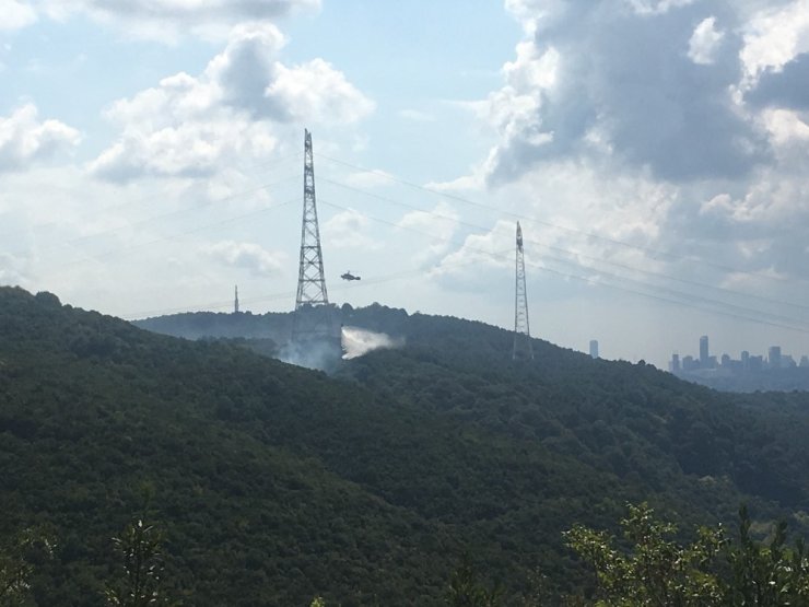Beykoz Anadolu Kavağı'ndaki ormanlık alanda iddiaya göre yüksek gerilim hattından yangın çıktı. İtfaiyenin yangına müdahalesi sürerken helikopterle havadan da destek veriliyor.