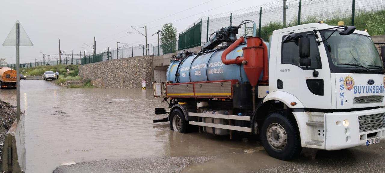 Ankara Büyükşehir Belediyesi; Afet Koordinasyon Merkezi koordinasyonda gerçekleştirilen müdahale çalışmalarında ASKİ Genel Müdürlüğü, Ankara İtfaiyesi, Fen İşleri ve Kent Estetiği Daire Başkanlıkları ile Ankara Zabıtası ekipleri ihbar noktalarına anında müdahalede bulundu.