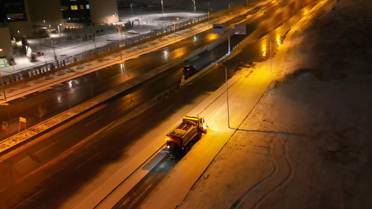 Afet Koordinasyon Merkezine (AKOM) bağlı tüm ekipler gece boyu kar ve buzlanma riskine karşı sürücü ve yayaların ulaşımda sıkıntı yaşamamaları için mesai harcadı.