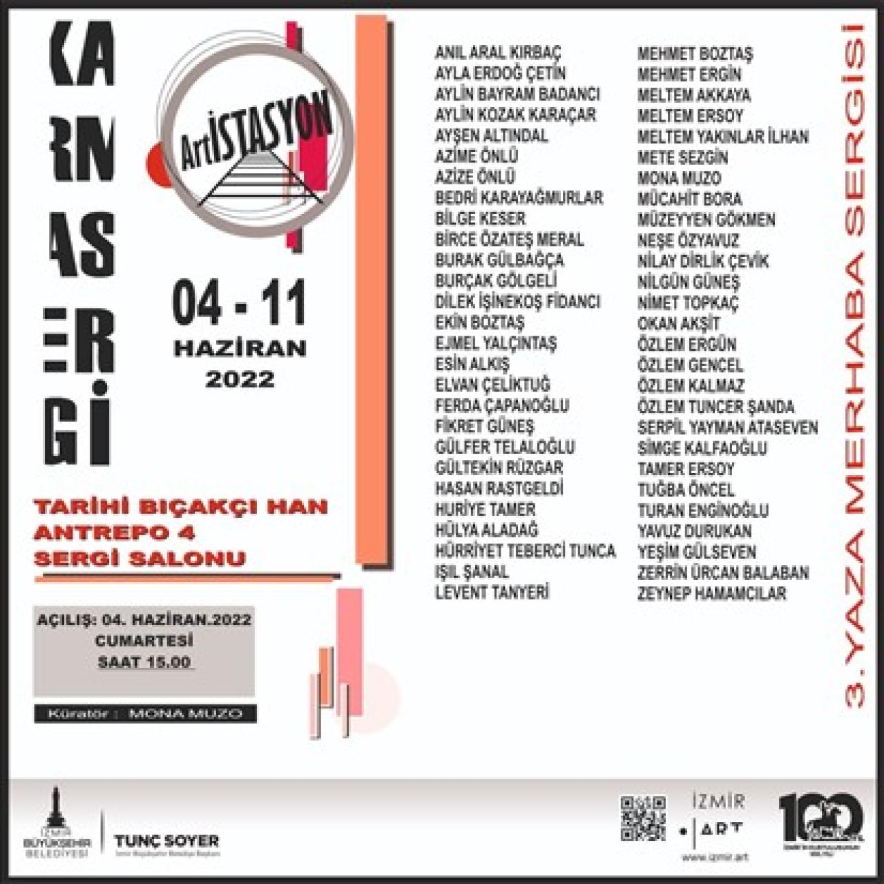 İzmir Büyükşehir Belediyesi’nin ev sahipliğinde 4-11 Haziran tarihleri arasında Art İstasyon Grubu’nun 3. Yaza Merhaba Sergisi düzenleniyor. İzmir Büyükşehir Belediye Başkanı Tunç Soyer tarafından kent yaşamına yeniden kazandırılan Tarihi Bıçakçı Han, küratörlüğünü sanatçı ve İzmir Suluboya Ressamları Derneği Başkanı Mona Muzo’nun yaptığı, çoğu Dokuz Eylül Üniversitesi Buca Eğitim Fakültesi Resim-İş Eğitimi Bölümü akademisyen ve mezunlarından oluşan 54 sanatçının eserlerine ev sahipliği yapacak. Resim, heykel, grafik baskı, suluboya ve seramik disiplinlerinden oluşan karma sergi hafta içi 09.00-17.30 saatleri arasında ziyaret edilebilir.