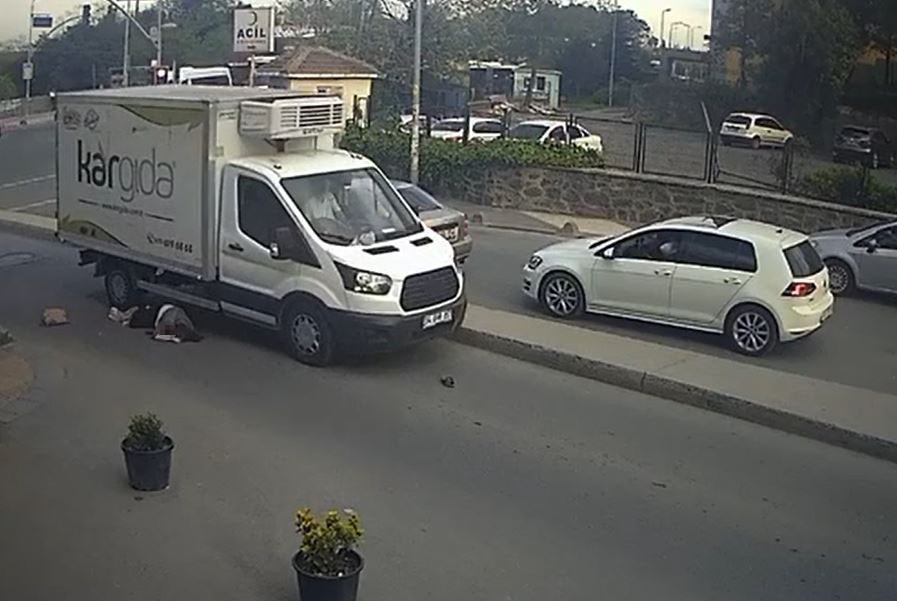 YOLUN KARŞISINA GEÇMEYE ÇALIŞAN KADININ ÜZERİNDEN KAMYONET GEÇTİ