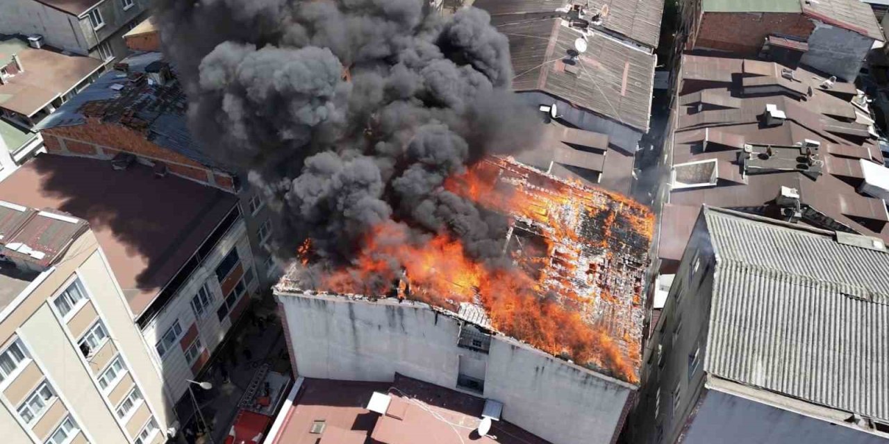 KÜÇÜKÇEKMECE’DE BİNANIN ÇATISI ALEV ALEV YANDI