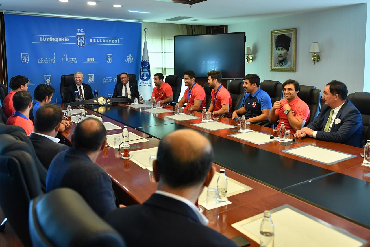 ASKİ SPORLU MİLLİ GÜREŞÇİLERDEN MANSUR YAVAŞ’A ZİYARET