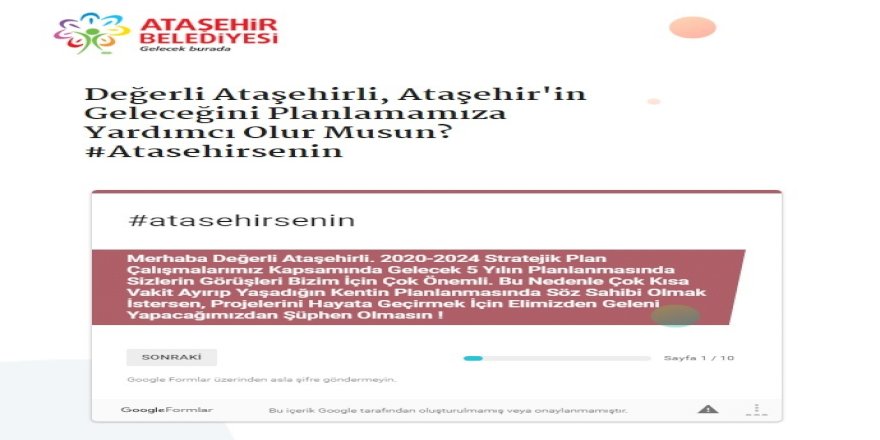 Ataşehir Belediyesi 2020-2024 stratejik plan çalışmaları kapsamında gelecek beş yılın planlanması için Ataşehirlilerin katılabileceği bir anket hazırladı.