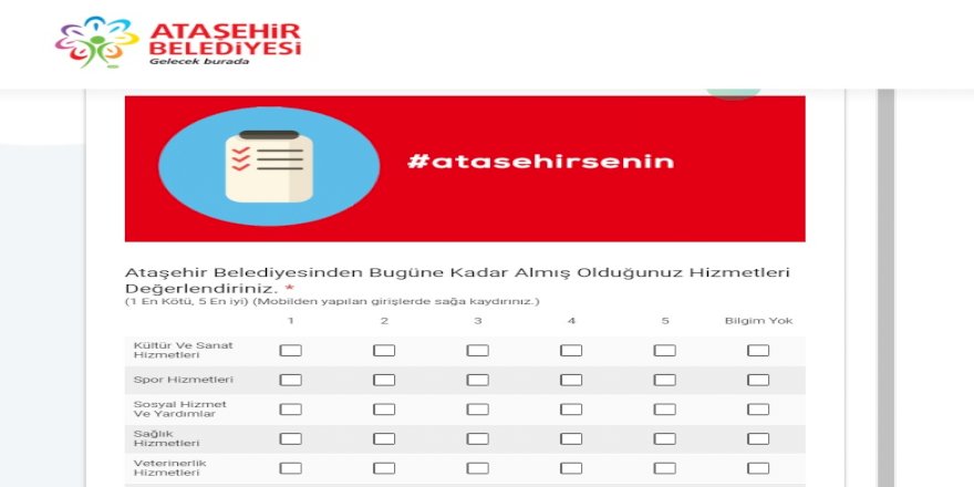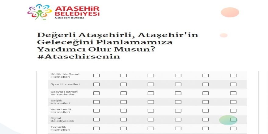 Ankete katılan Ataşehirliler hem geçmiş beş yıllık süreçte hangi hizmeti almakta zorlandıklarını belirtirken hem de gelecek beş yılda neler yapılması gerektiğini de belirleyecekler.