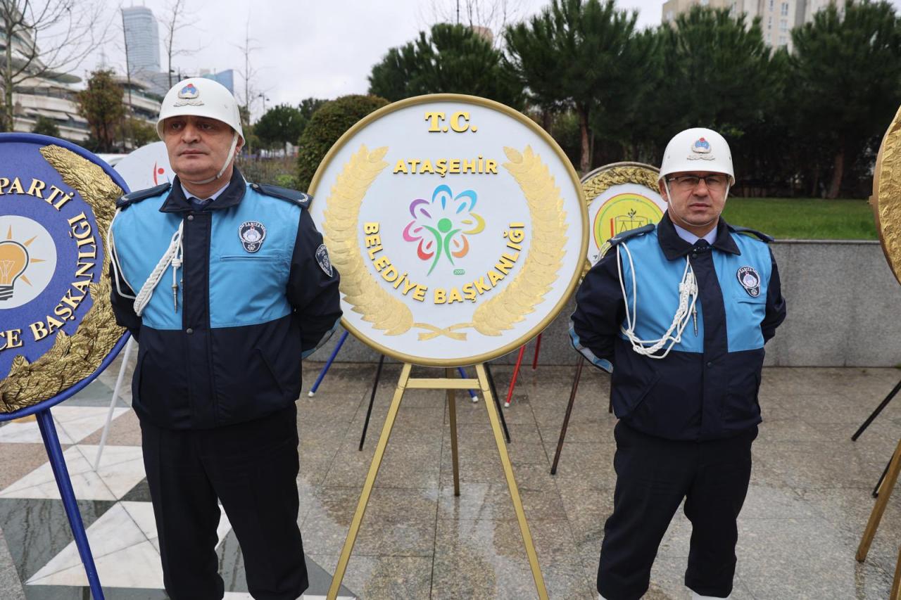 Törende Ataşehir Kaymakamı İsmail Hakkı Ertaş, Garnizon Komutanı İkmal Albay Burak Uçar ve Ataşehir Belediye Başkan Vekili İlhami Yılmaz Atatürk Anıtı'na çelenk sundular.