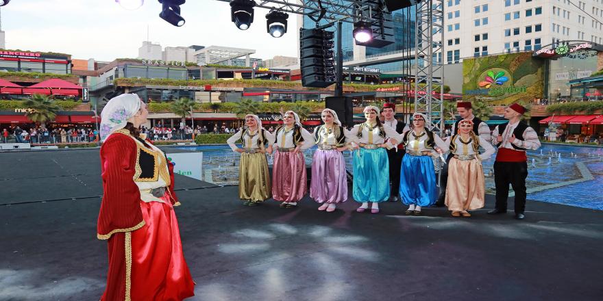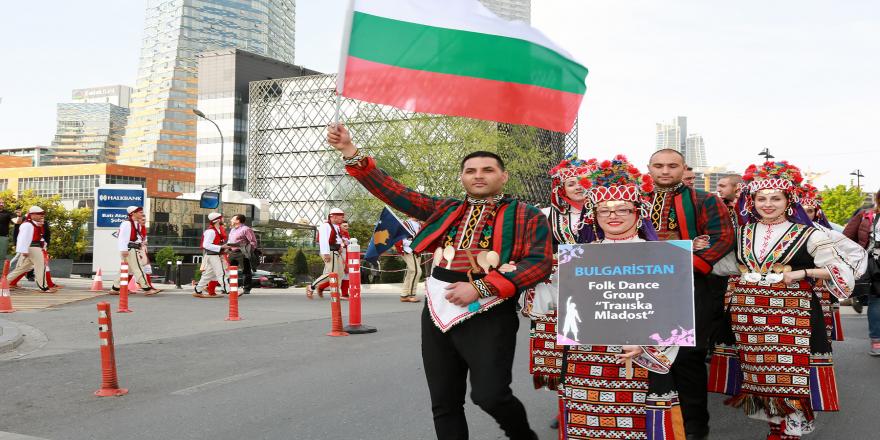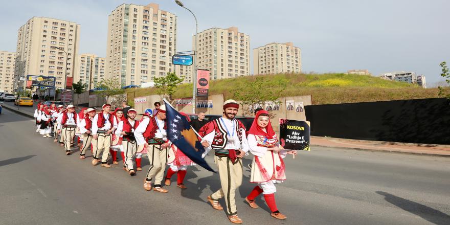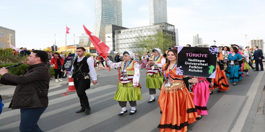 Ardından Ataşehir Belediyesi’ni önünden ülkelerinin bayraklarıyla kortej yapan dans grupları Watergarden’da gösterilerini sundular.