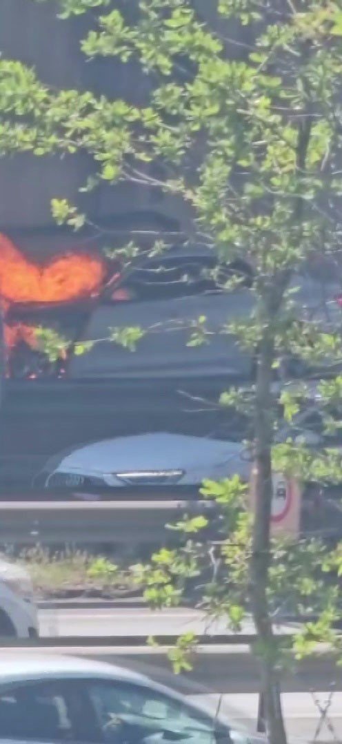 ATAŞEHİR’DE LÜKS OTOMOBİL ALEV ALEV YANDI