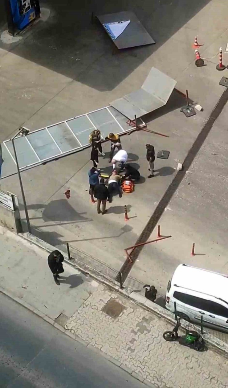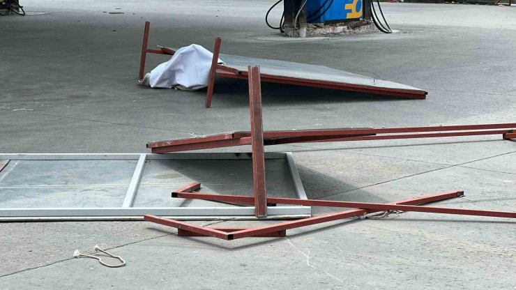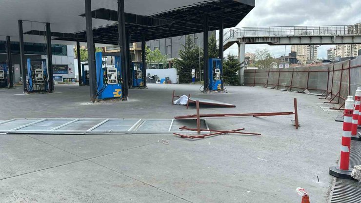 Ataşehir'de tadilat için akaryakıt istasyonuna konulan panolar rüzgarın etkisiyle bir kişinin üzerine düştü.