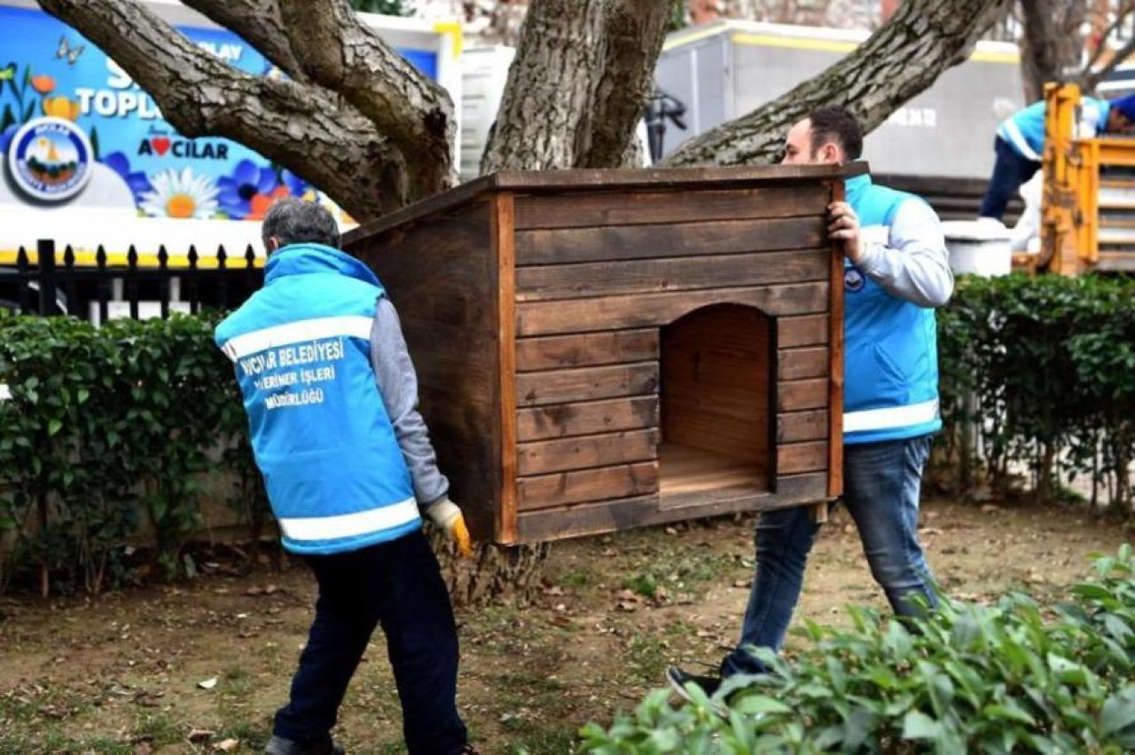 Avcılar Belediyesi sokakta yaşayan köpekler için ilçedeki parklara yeni kulübeler yerleştirdi