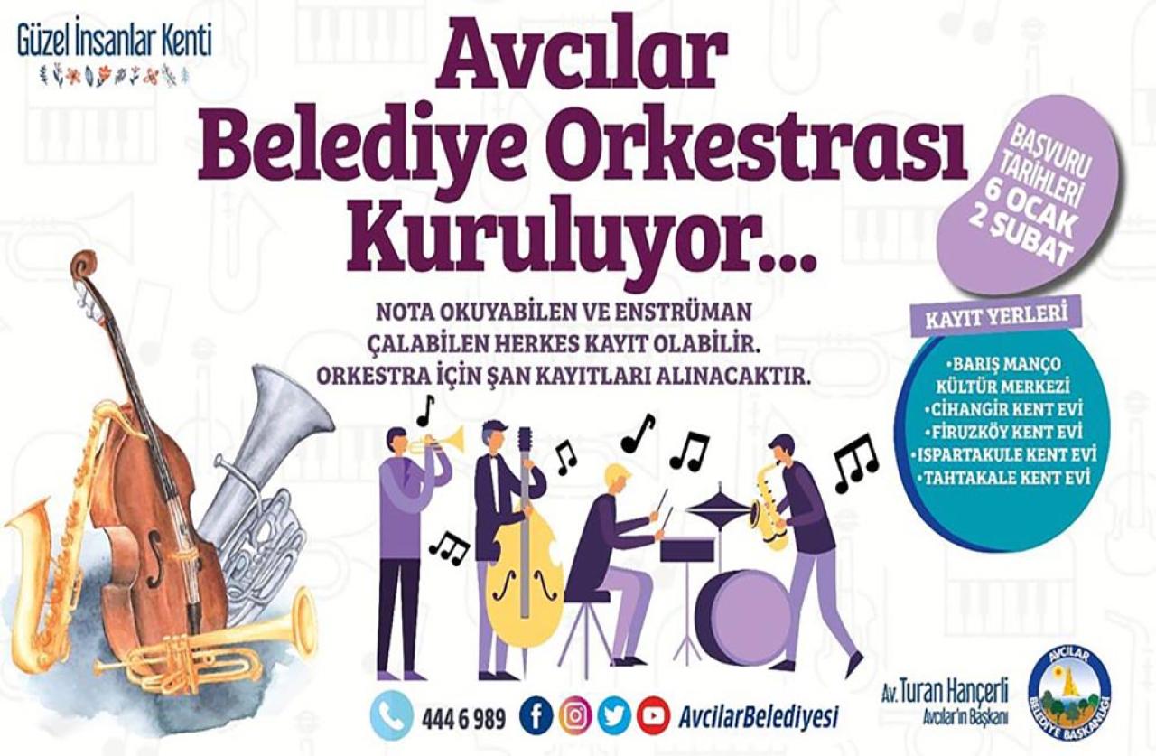 Kültür sanat çalışmalarına hız veren Avcılar Belediyesi, Avcılarlı vatandaşlardan oluşacak belediye orkestrasının kurulması için çalışmalara başladı. Orkestrada yer almak isteyen vatandaşlar için başvurular 6 Ocak – 6 Şubat 2020 tarihleri arasında gerçekleştirilecek.