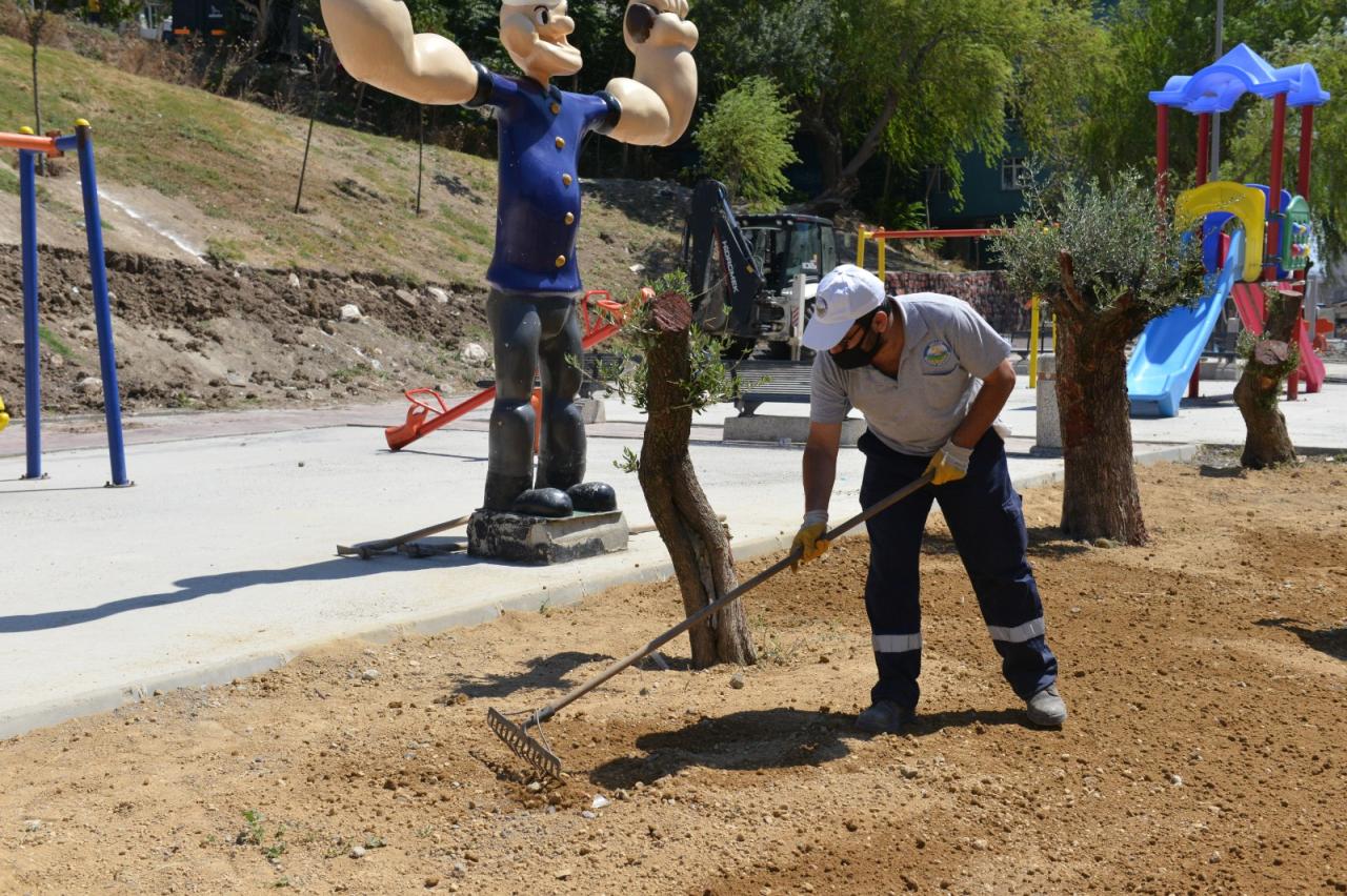 Yaz döneminde yeşil alanların yoğun olduğu parklarda çim biçme, yabani ot temizliği ve budama işlemlerine ağırlık verilirken, spor aletleri, kent mobilyaları ve oyun gruplarında da düzenli olarak bakım onarım yapılıyor.