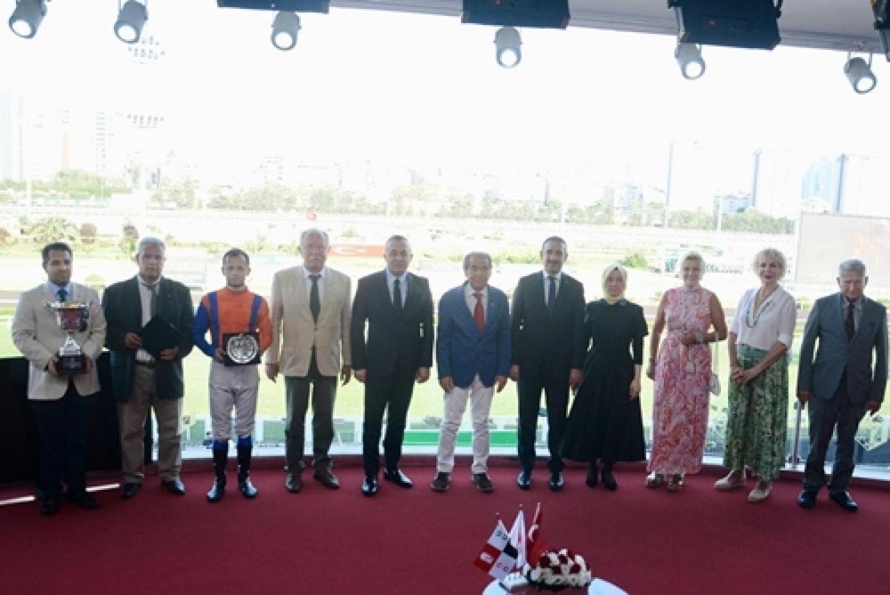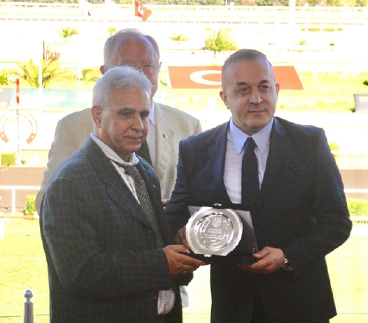 Kulübümüz Asli Üyesi Can N. Güven de kazanan atın jokeyi Özcan Yıldırım’a plaketini takdim etti.