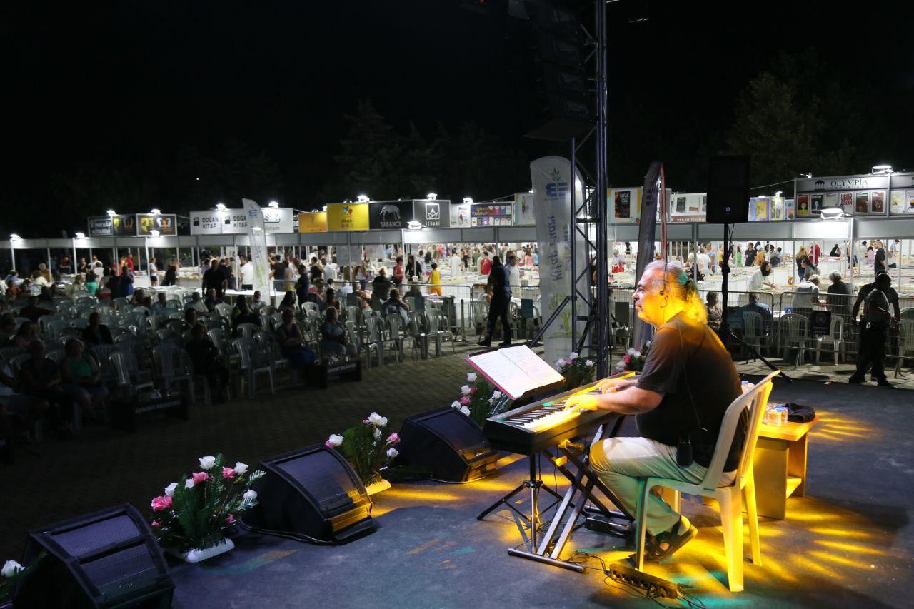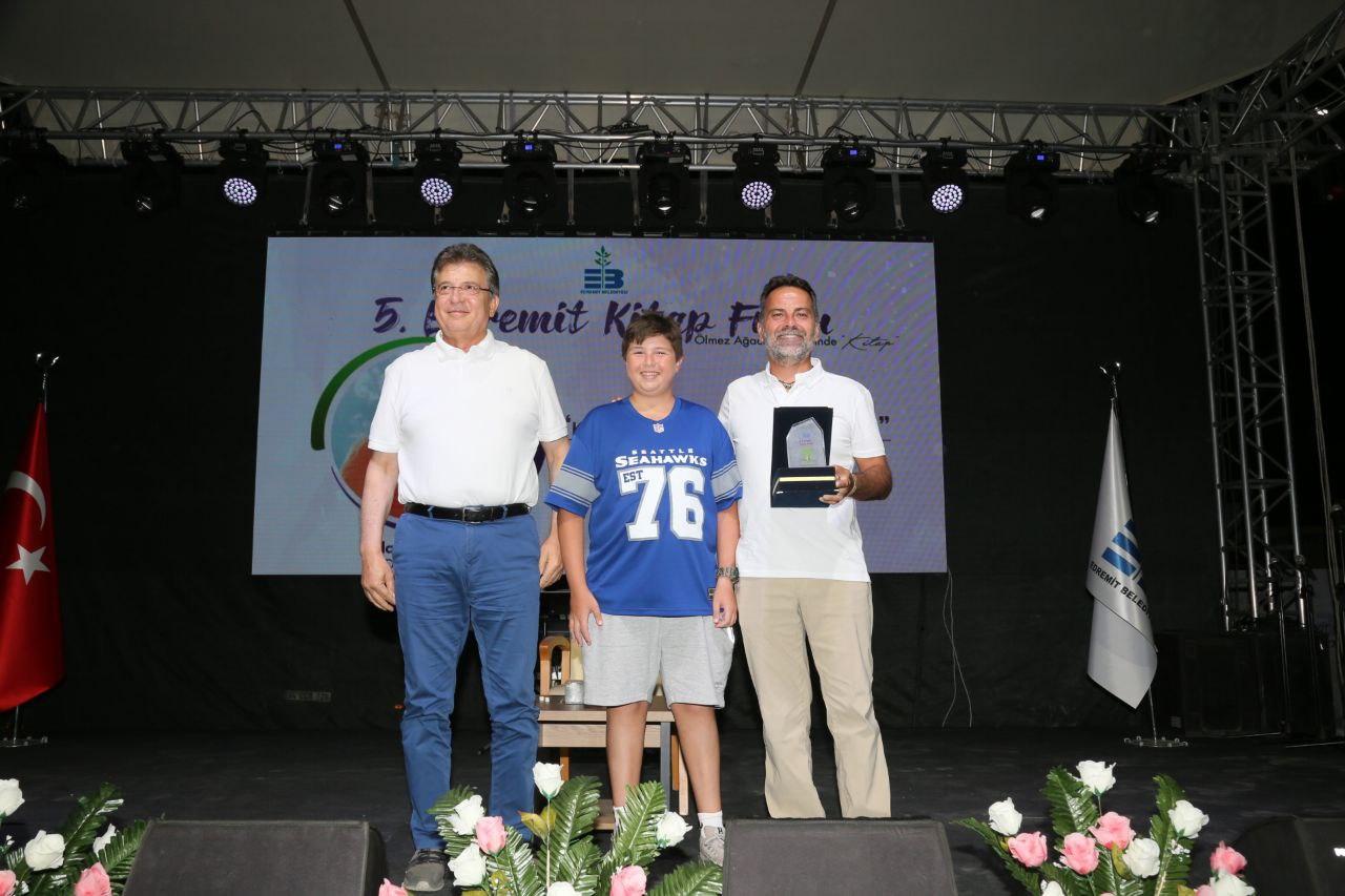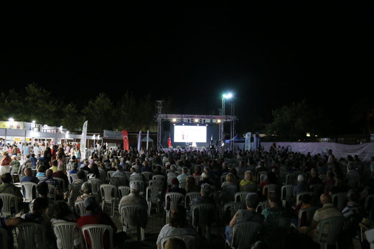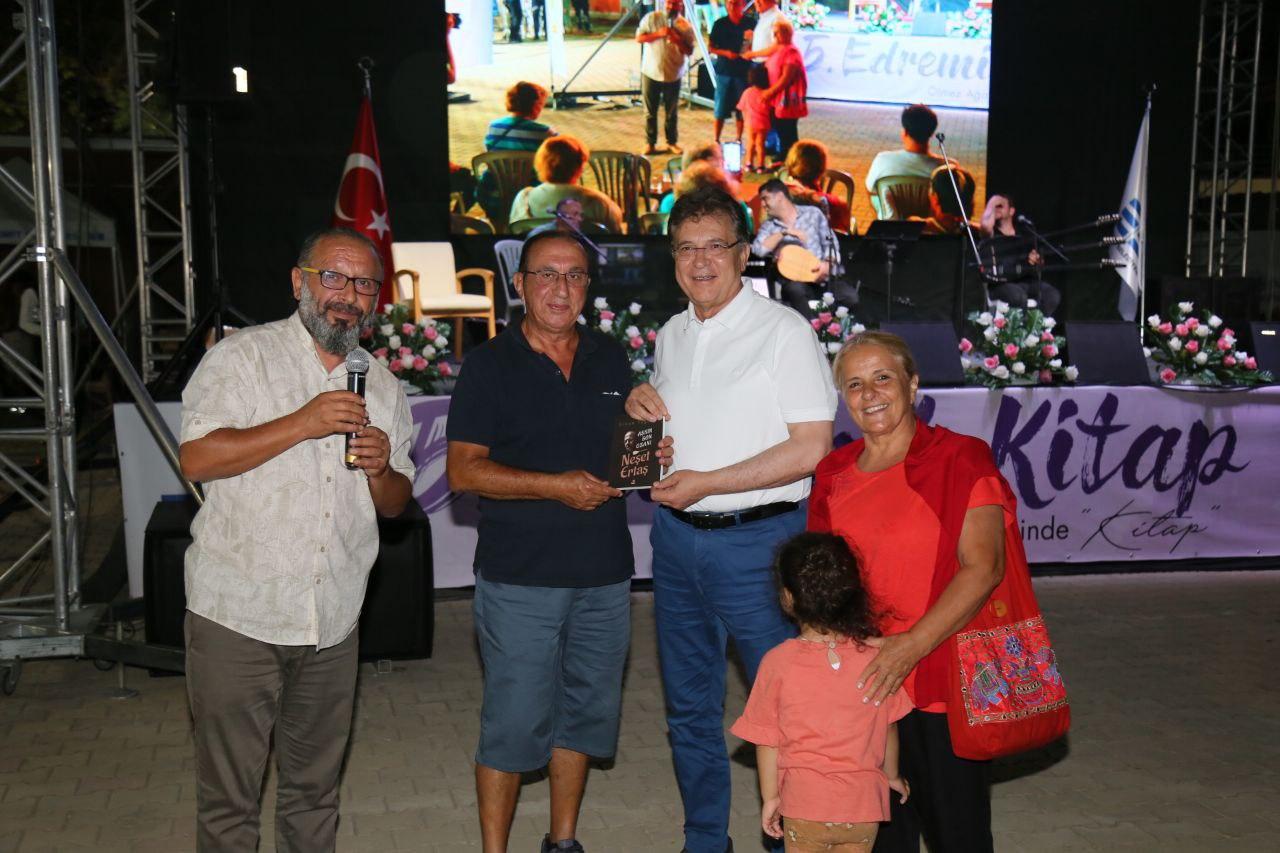 5.Edremit Kitap Fuarı’nın 3. günü Müzisyen ve Yönetmen Erdal Şahin’in dinleyenlere huzur veren “Aydınlık Kapıları: Şeyh Bedrettin, Nazım Hikmet” başlıklı muhteşem dinletisi ile son buldu. Dinletinin ardından Şahin’e plaketini Belediye Başkanı Selman Hasan Arslan, tarafından sahneye davet edilen babası Erdoğan Şahin tarafından verildi.