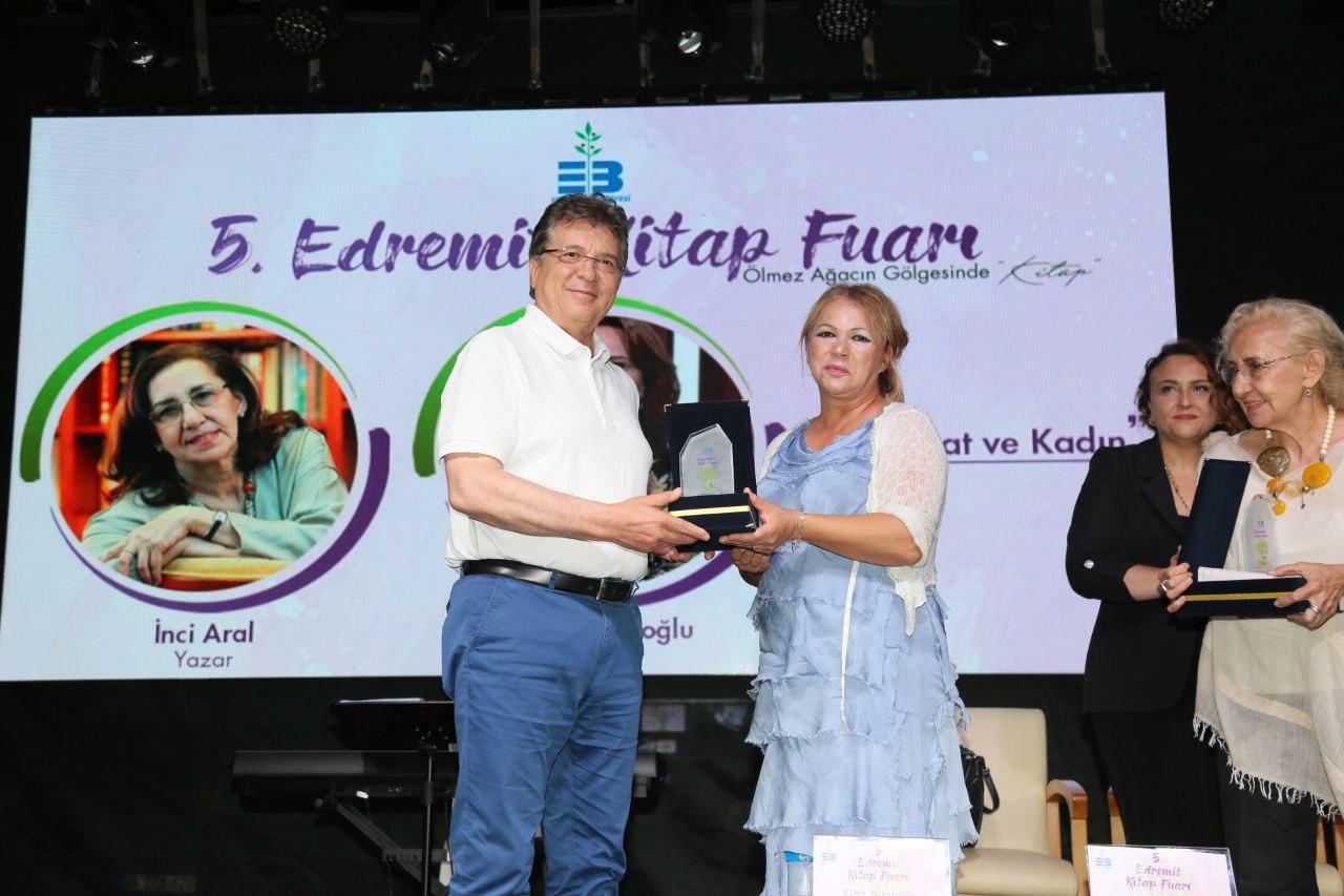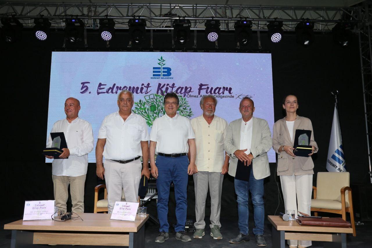 Söyleşinin ardından konuklara Edremit Belediye Başkanı Selman Hasan Arslan, plaketlerini takdim etti.