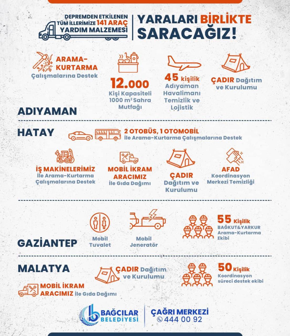 BAĞCILAR BELEDİYESİ’NDEN DEPREM BÖLGESİNDE 12 BİN KİŞİYE 3 ÖĞÜN SICAK YEMEK