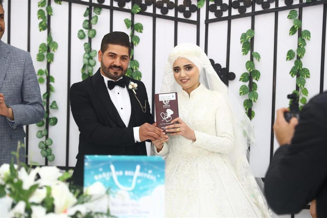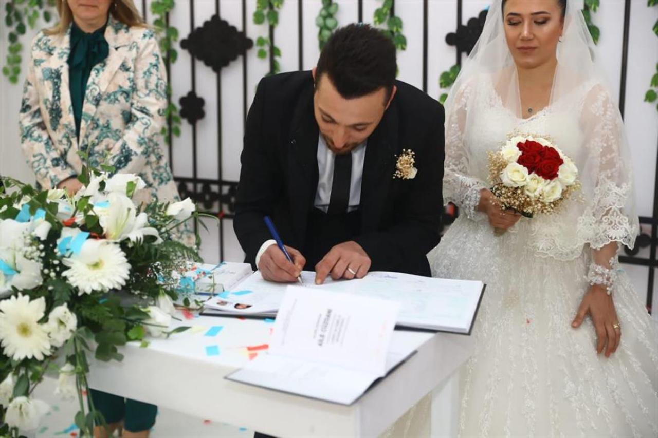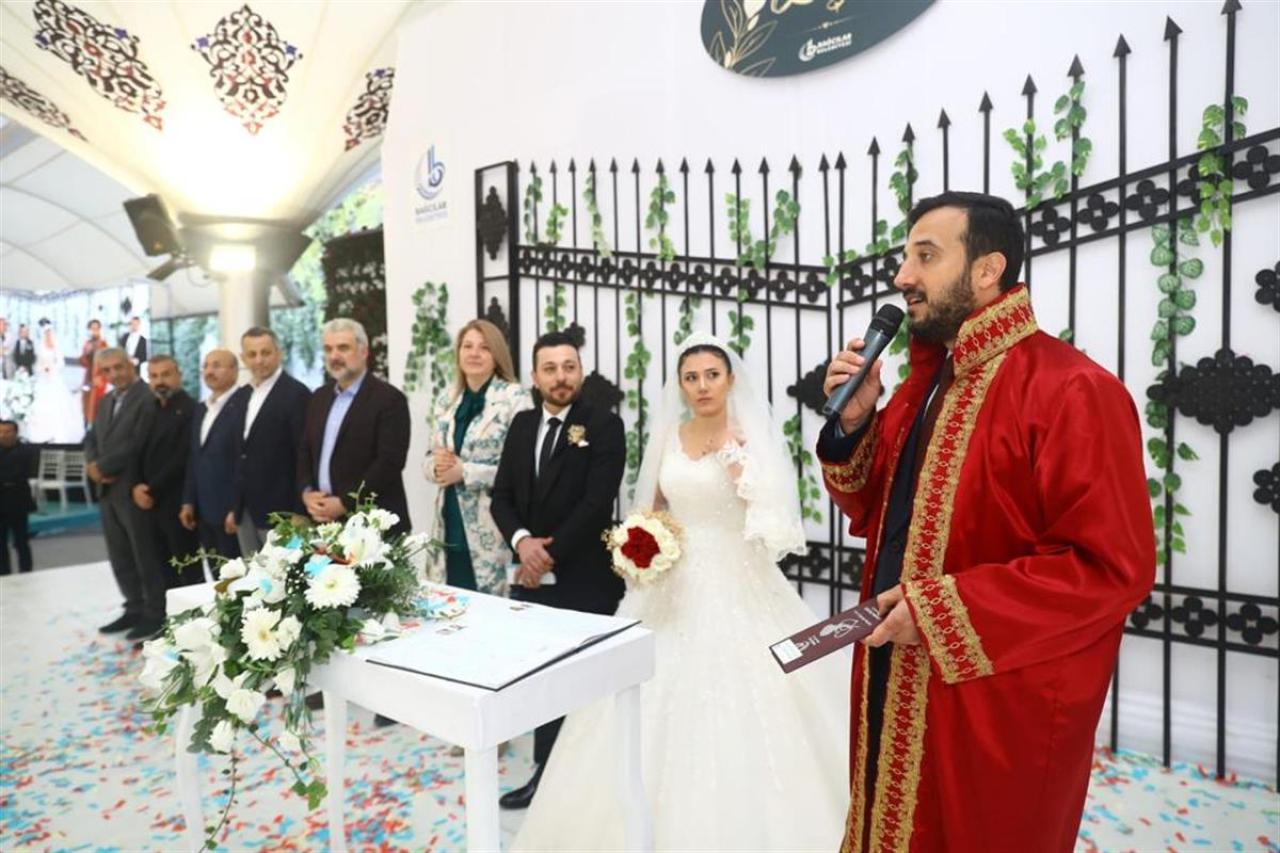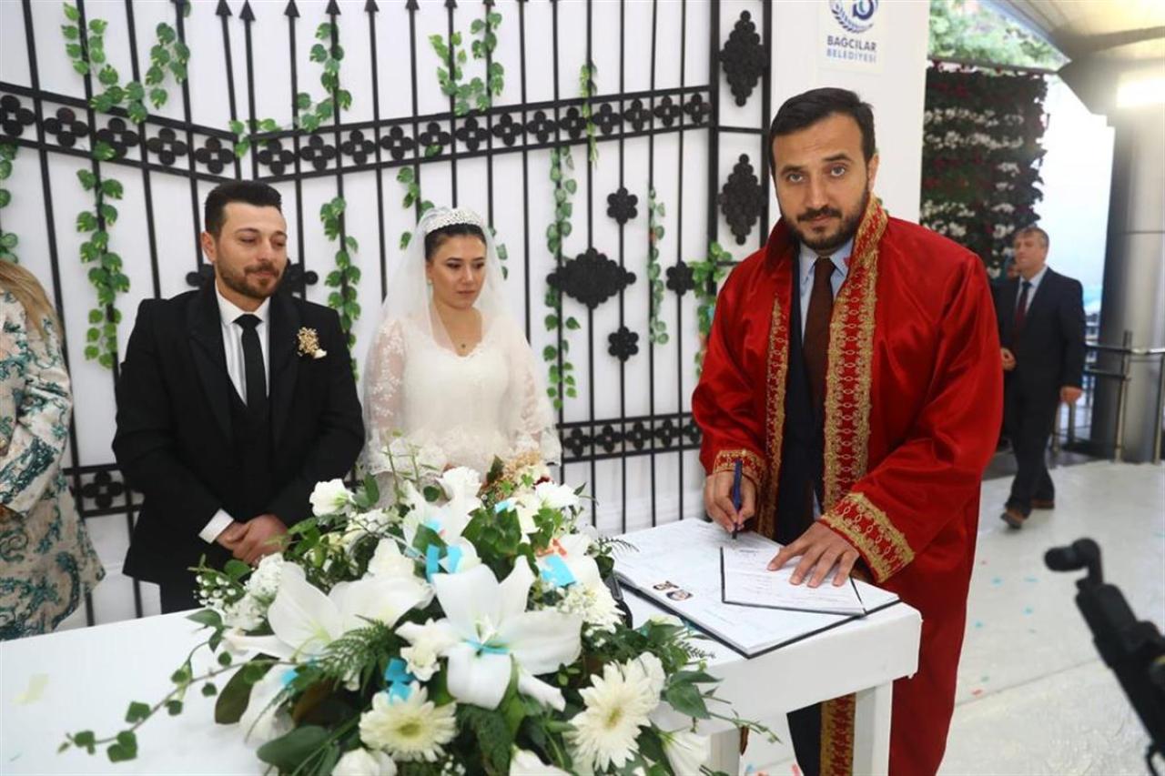 Protokol konuşmalarından sonra Bağcılar Belediye Başkanı Abdullah Özdemir, temsili olarak iki çiftin nikahını kıydı. “Evet” diyerek mutlu yuvaya ilk adım atan çiftlerin arasında iki kız kardeş de bulunuyor. Kübra ve Sümeyye Oral kardeşler aşık oldukları damat adaylarıyla evlenmek için aynı günü seçti.